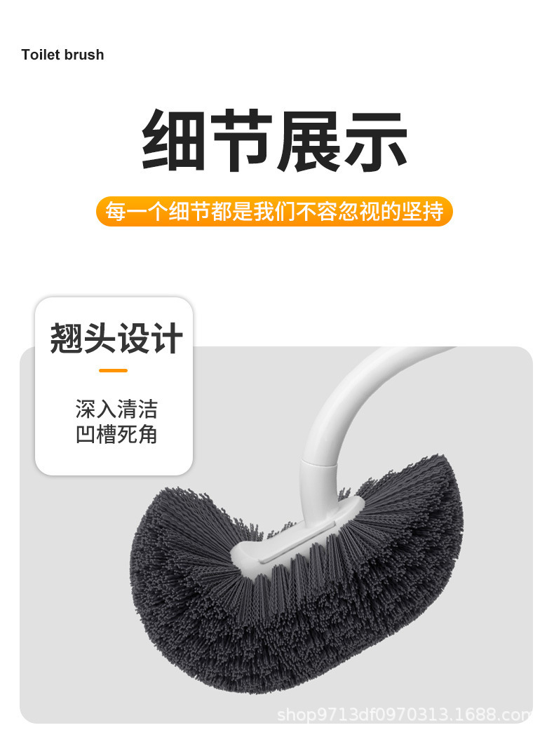 newly upgraded long handle dead-zone free toilet brush-gray white (free hook)