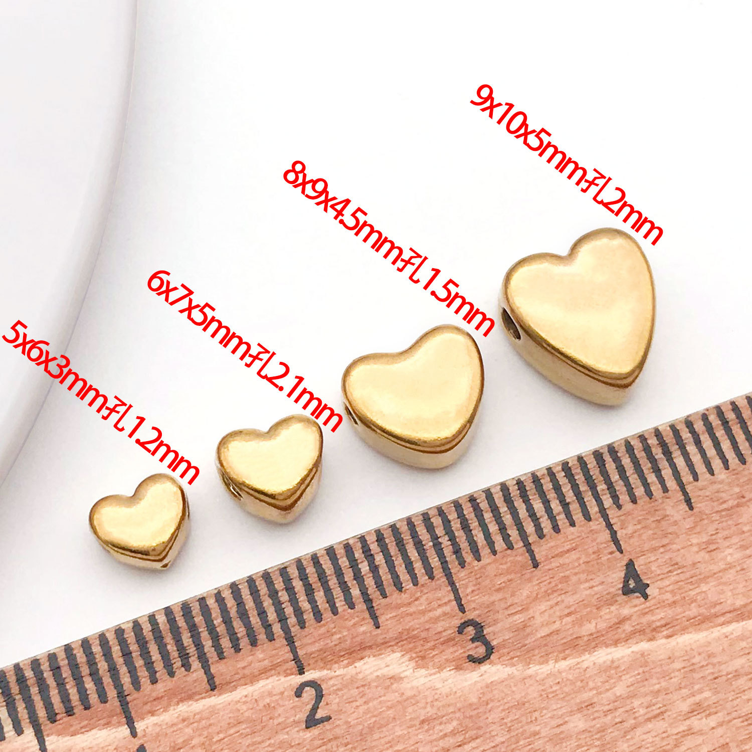 5x6x3mm hole 1mm vacuum plating golden stainless steel small and medium flat love heart spacer beads-0.4 g-t301