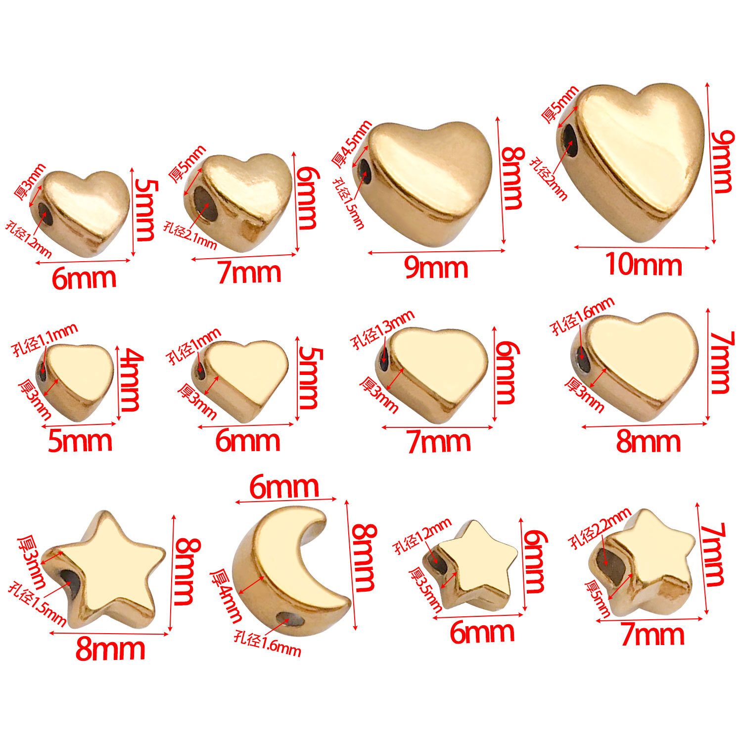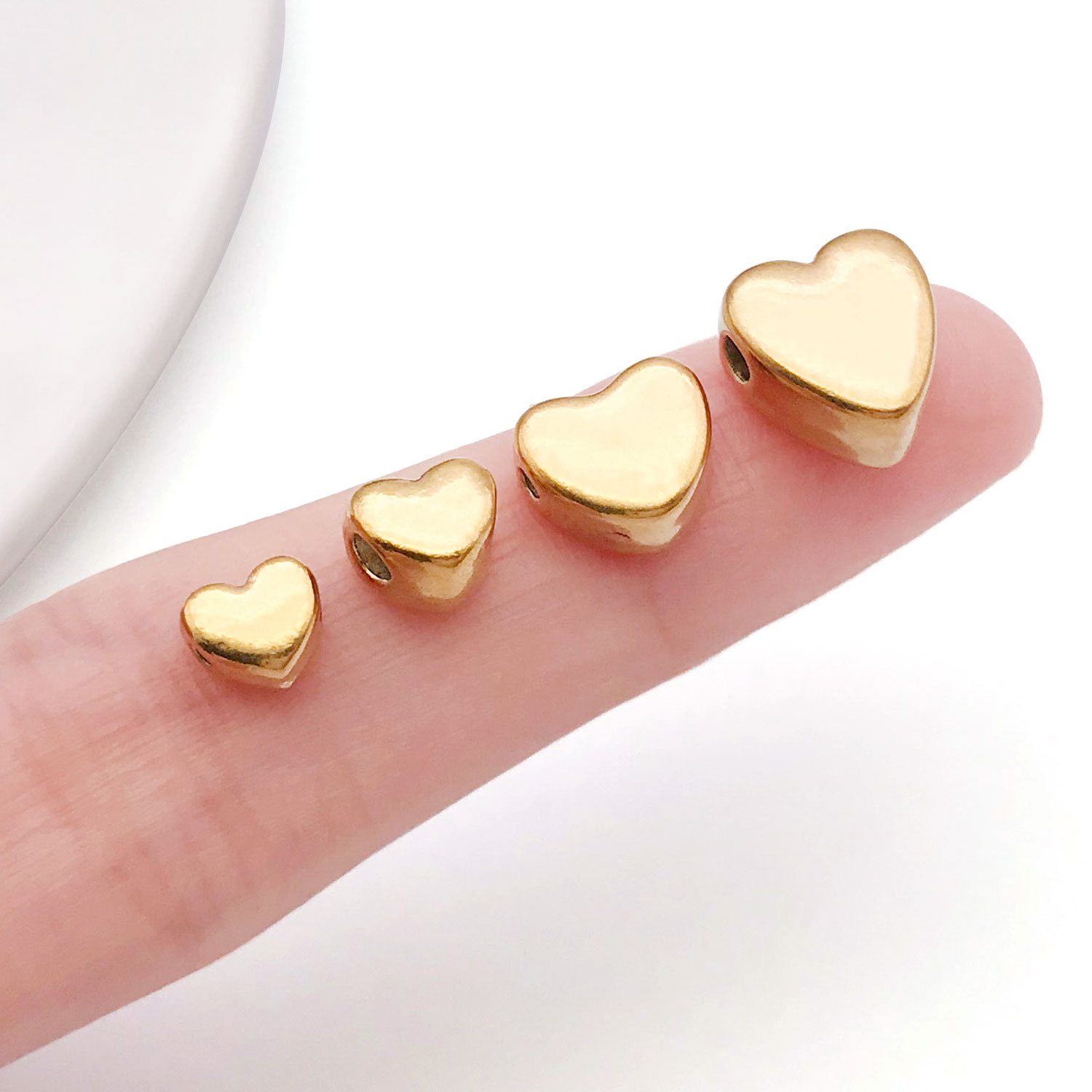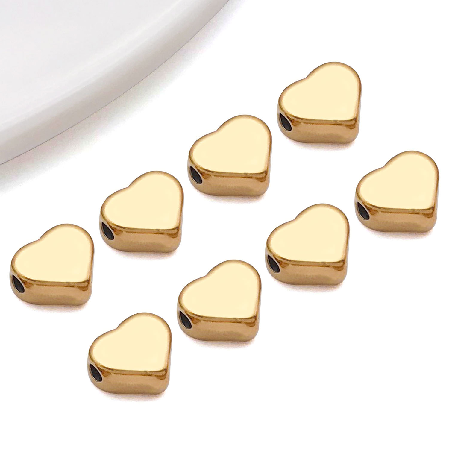 6x7x3mm hole 1.3mm vacuum plating gold stainless steel medium flat love heart spacer beads-0.6 g-t30