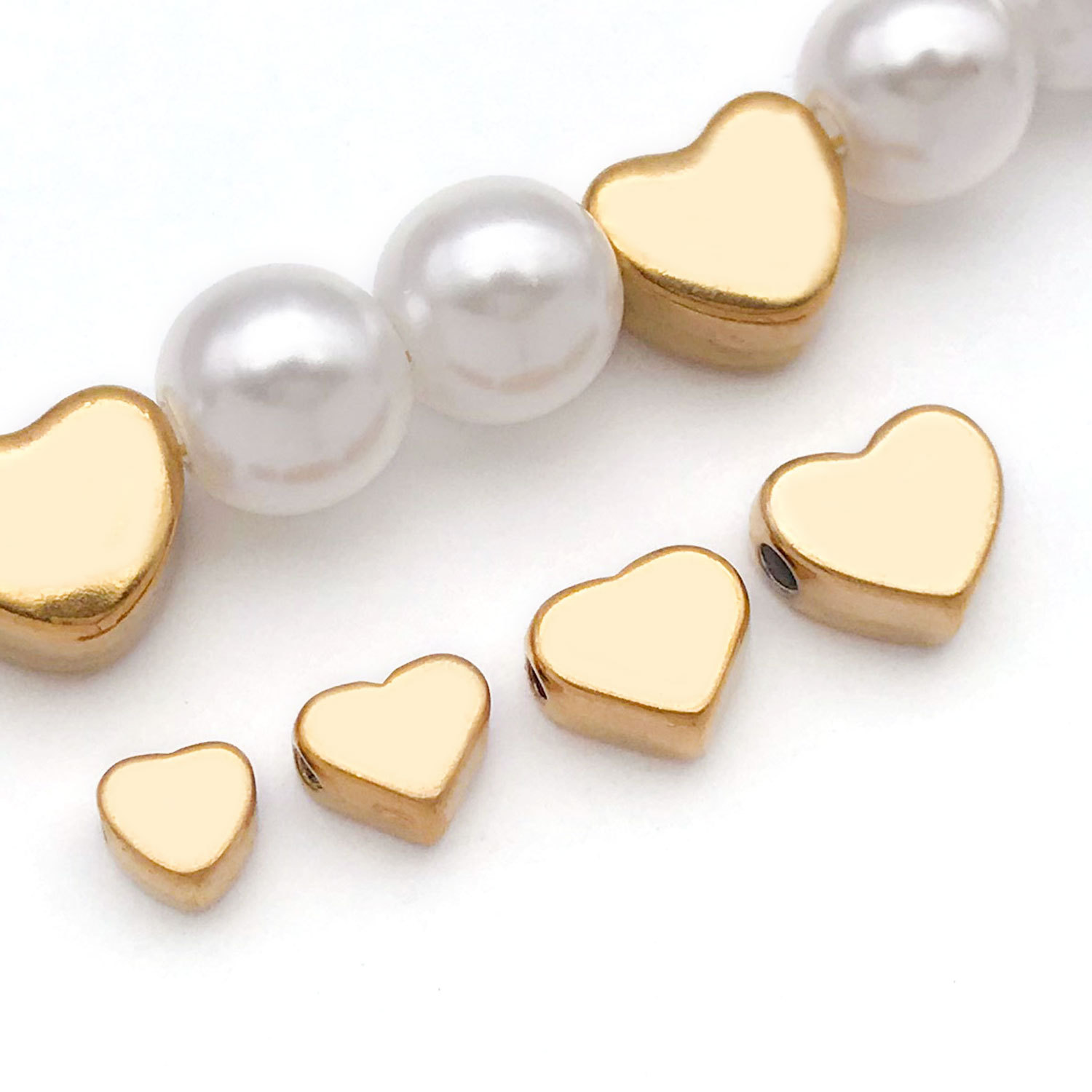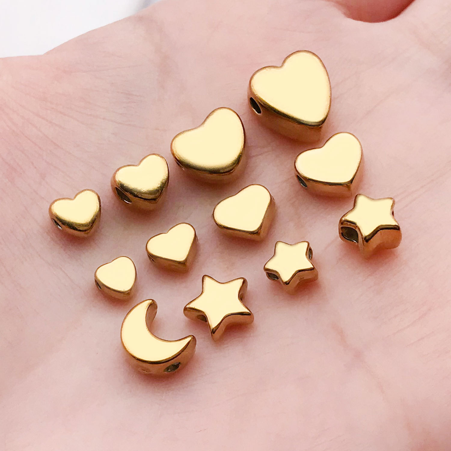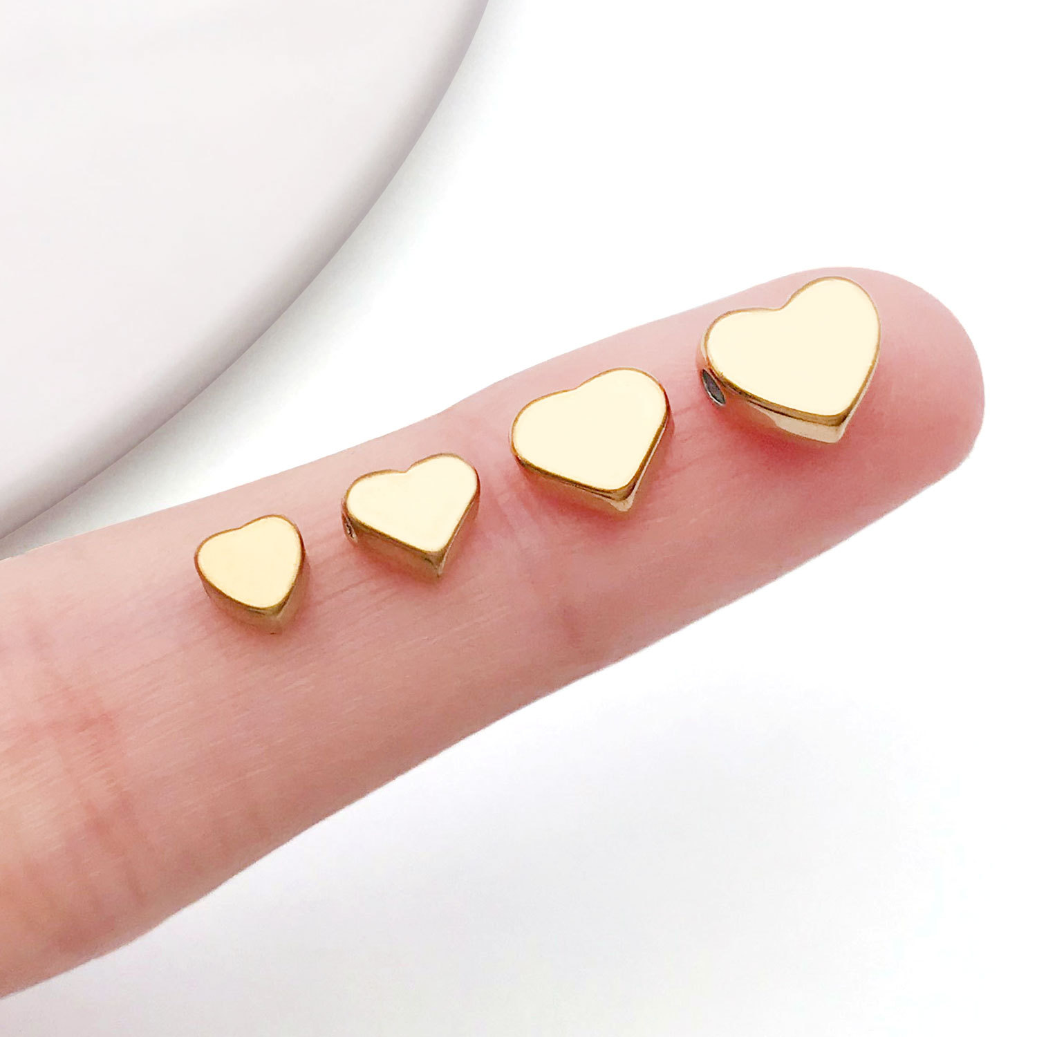 6x7x3mm hole 1.3mm vacuum plating gold stainless steel medium flat love heart spacer beads-0.6 g-t30