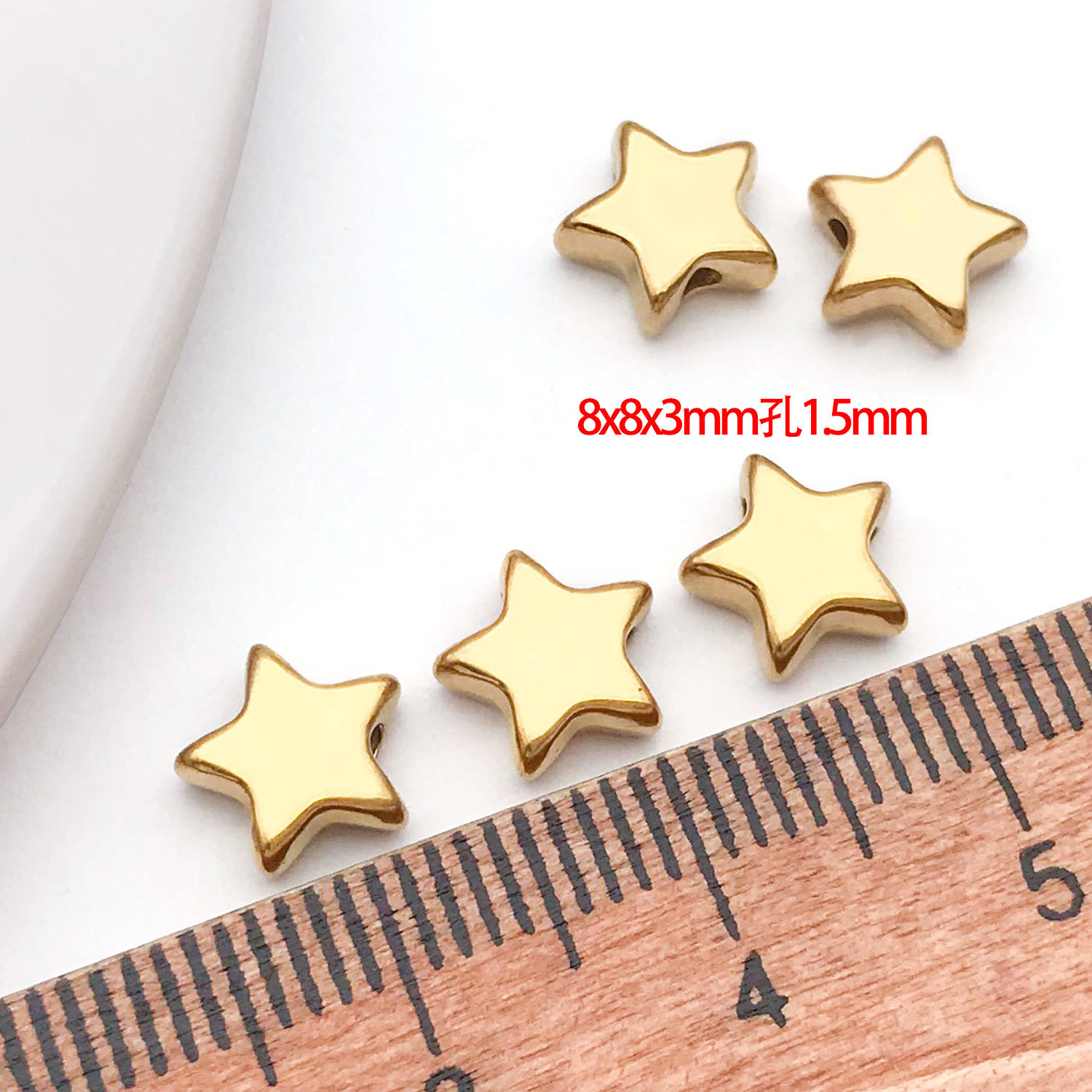 8x8x3mm hole 1.5mm vacuum plating golden stainless steel flat pentagram spacer beads-0.52 g-t30