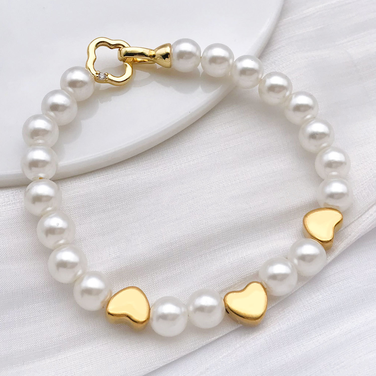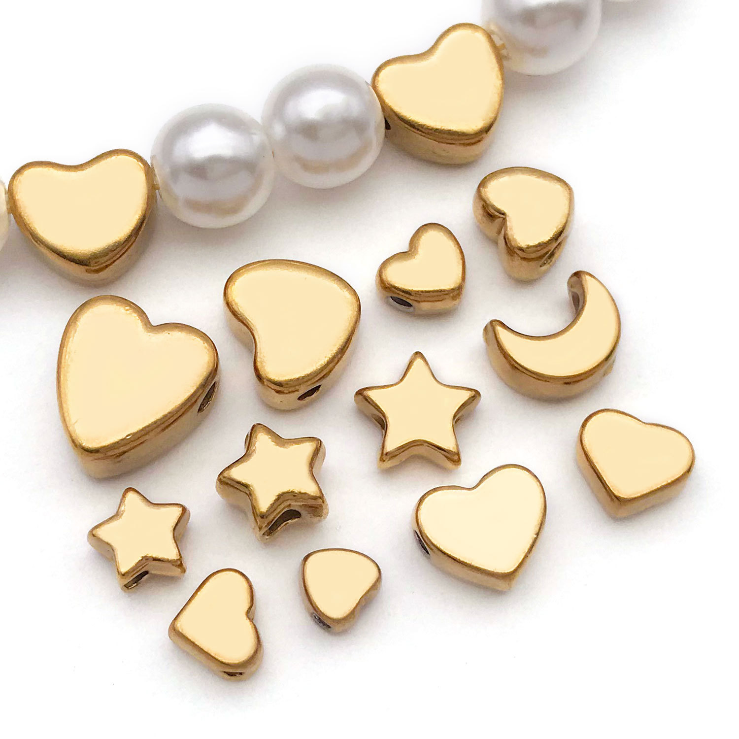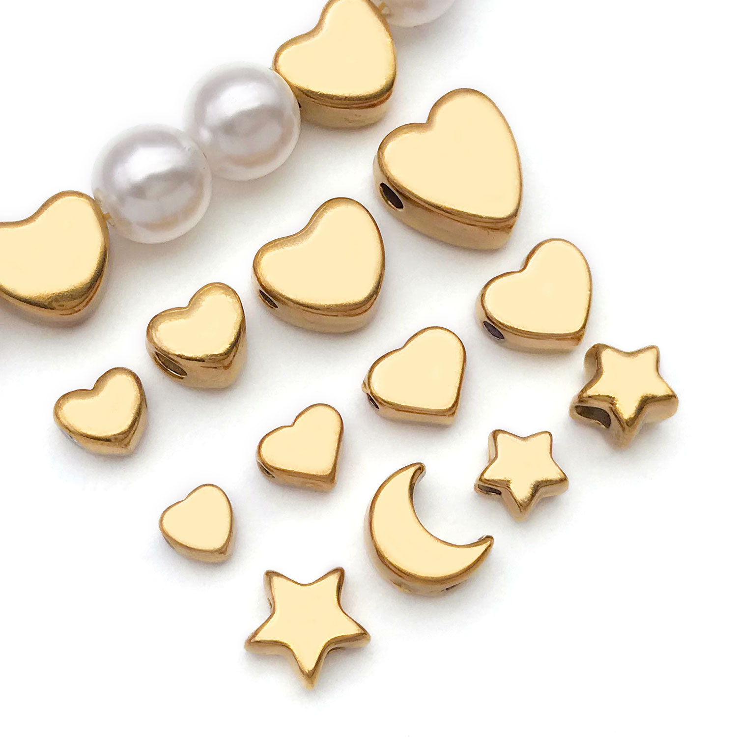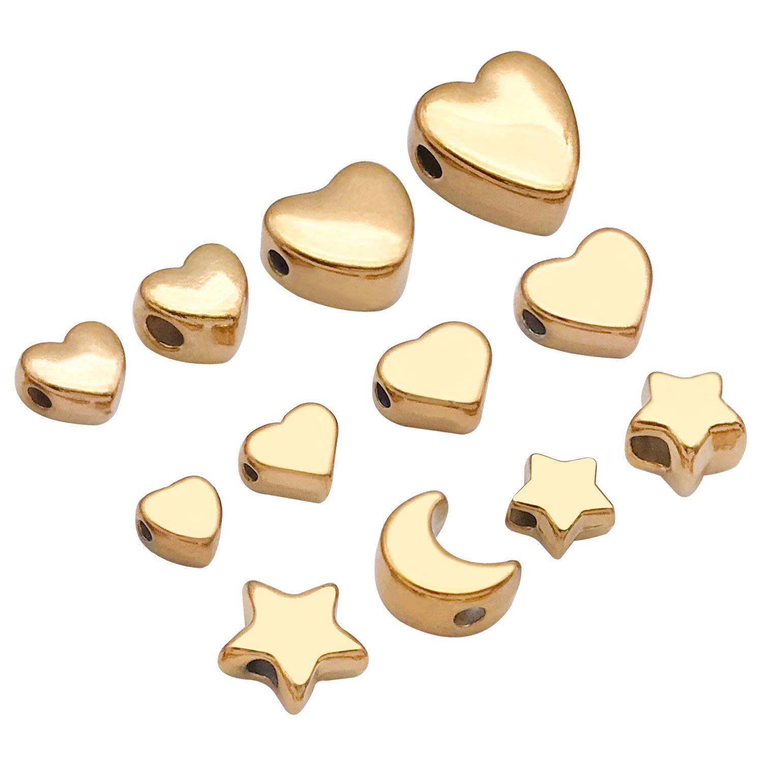 6x7x5mm hole 2.1mm vacuum plating golden stainless steel small and medium arc love heart spacer beads-0.75g-t