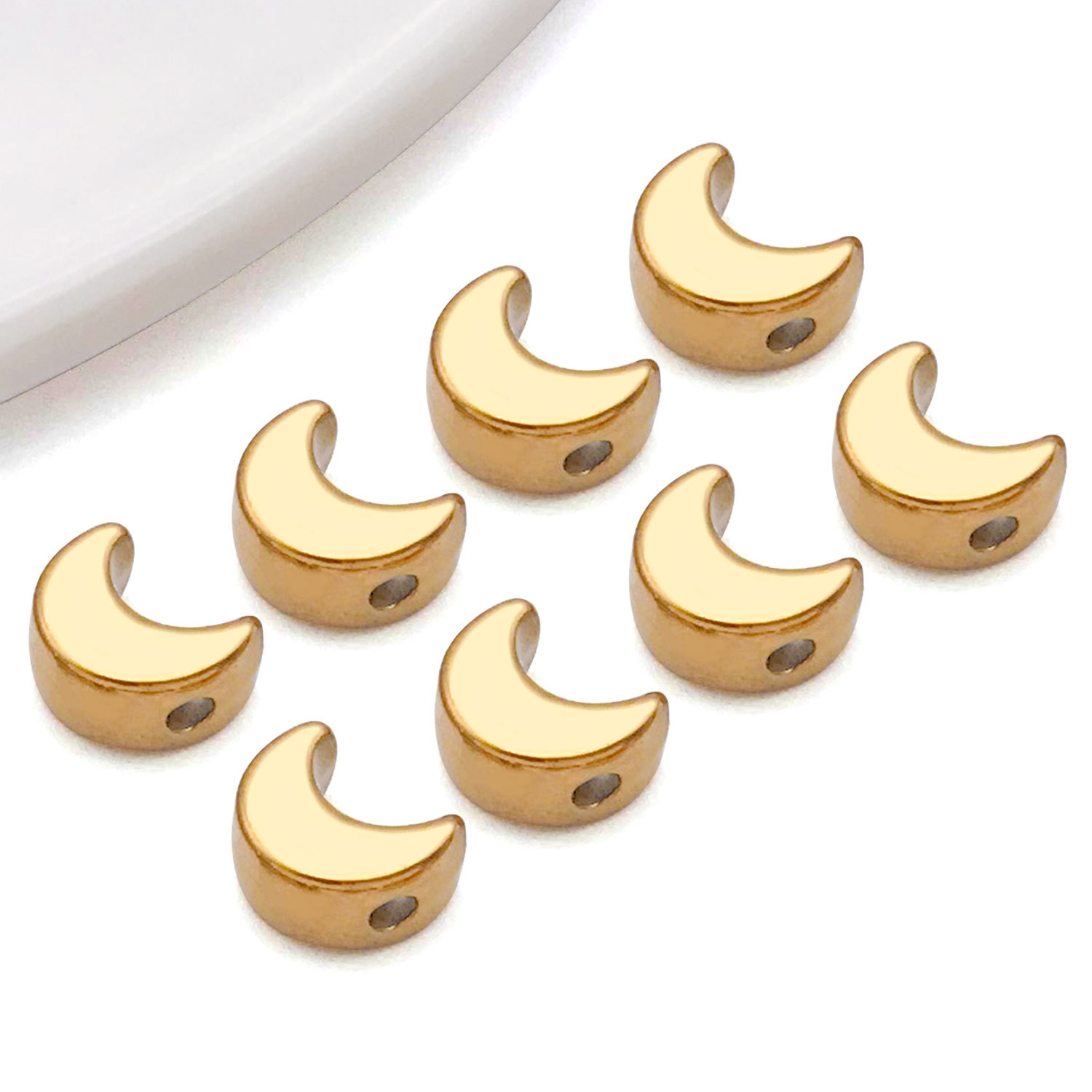 6x8x4mm hole 1.6mm vacuum plating golden stainless steel flat moon spacer beads-0.86 g-t300