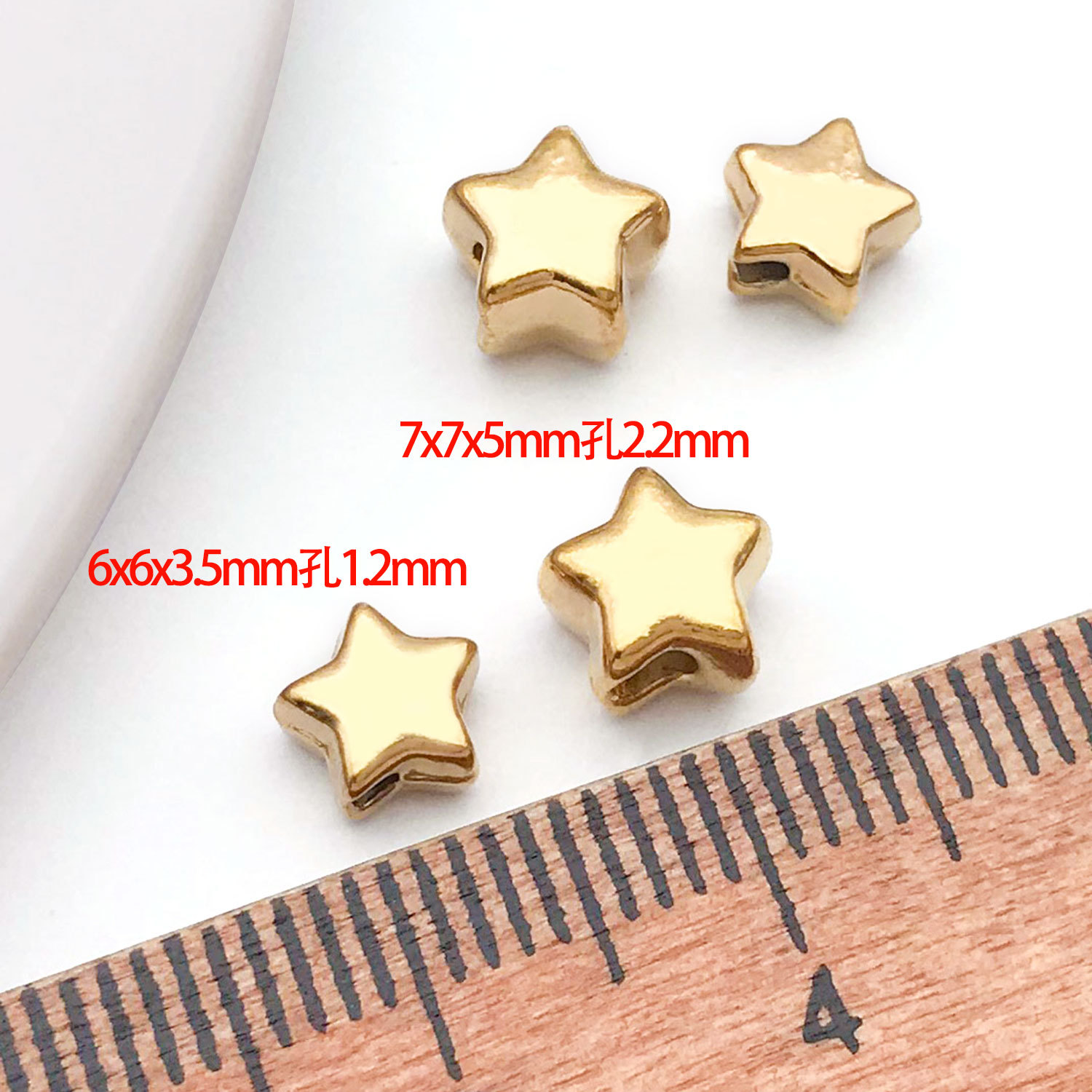 6x6x3.5mm hole 1.2mm vacuum plating gold stainless steel small curved five-pointed star spacer beads-0.38g
