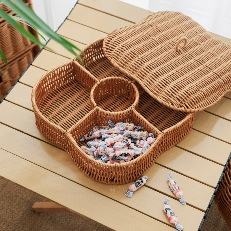 plum-shaped covered compartment basket