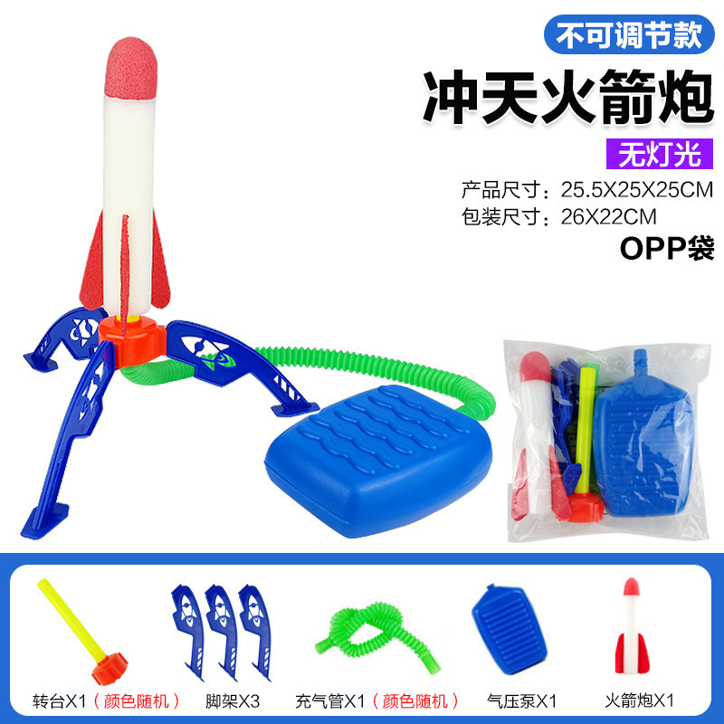 | 【Unadjustable Angle】 No-Lights Version - Rocket Launching Set | OPP bag | Turning table x1, tripod x3, air hose x1 Air pressure pump x1, no-light rocket x1 | Rocket: 25.5x25x25cm Single rocket: 17x6.5cm | 26x22cm | 210 | 68*43*57 |