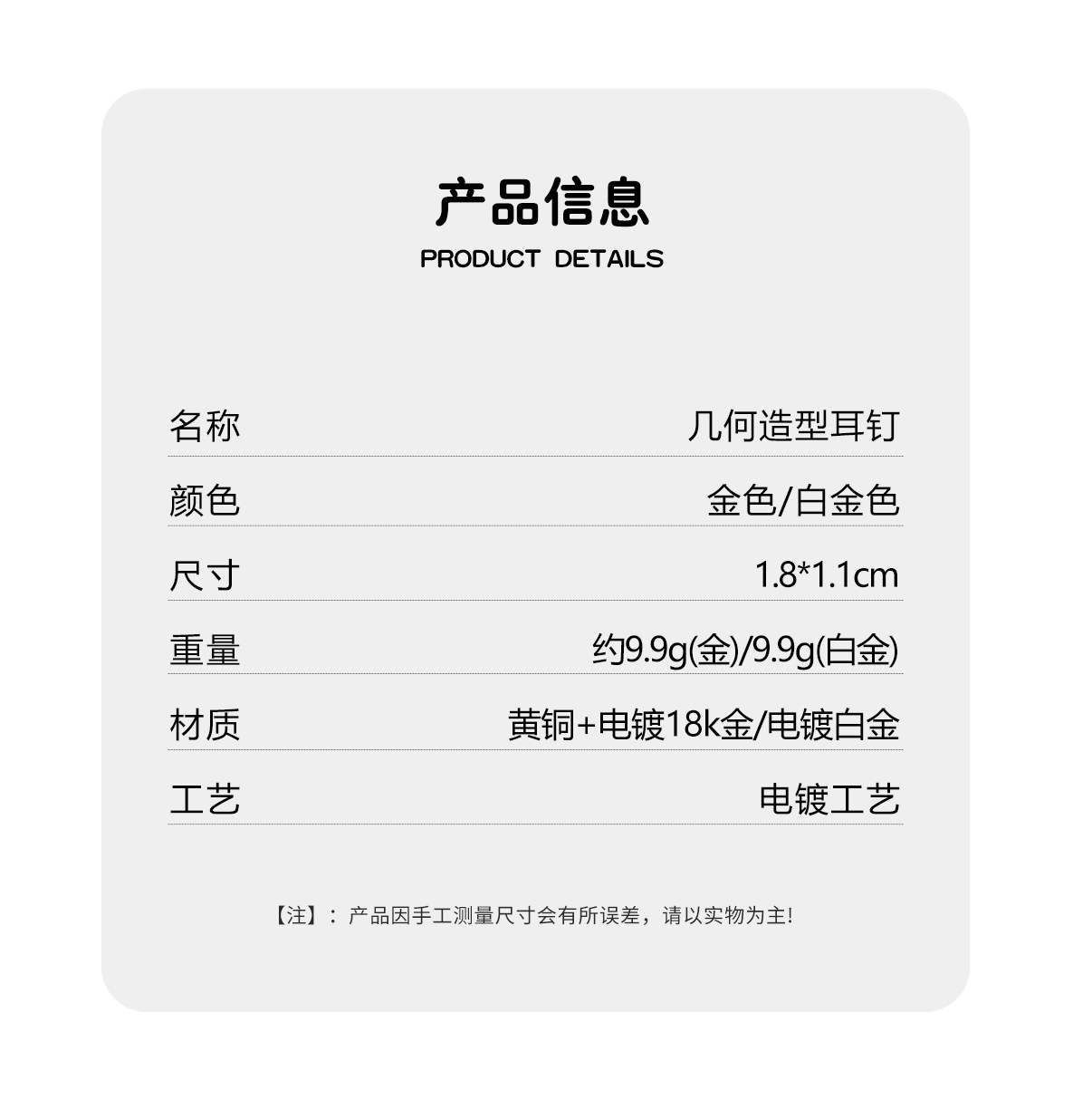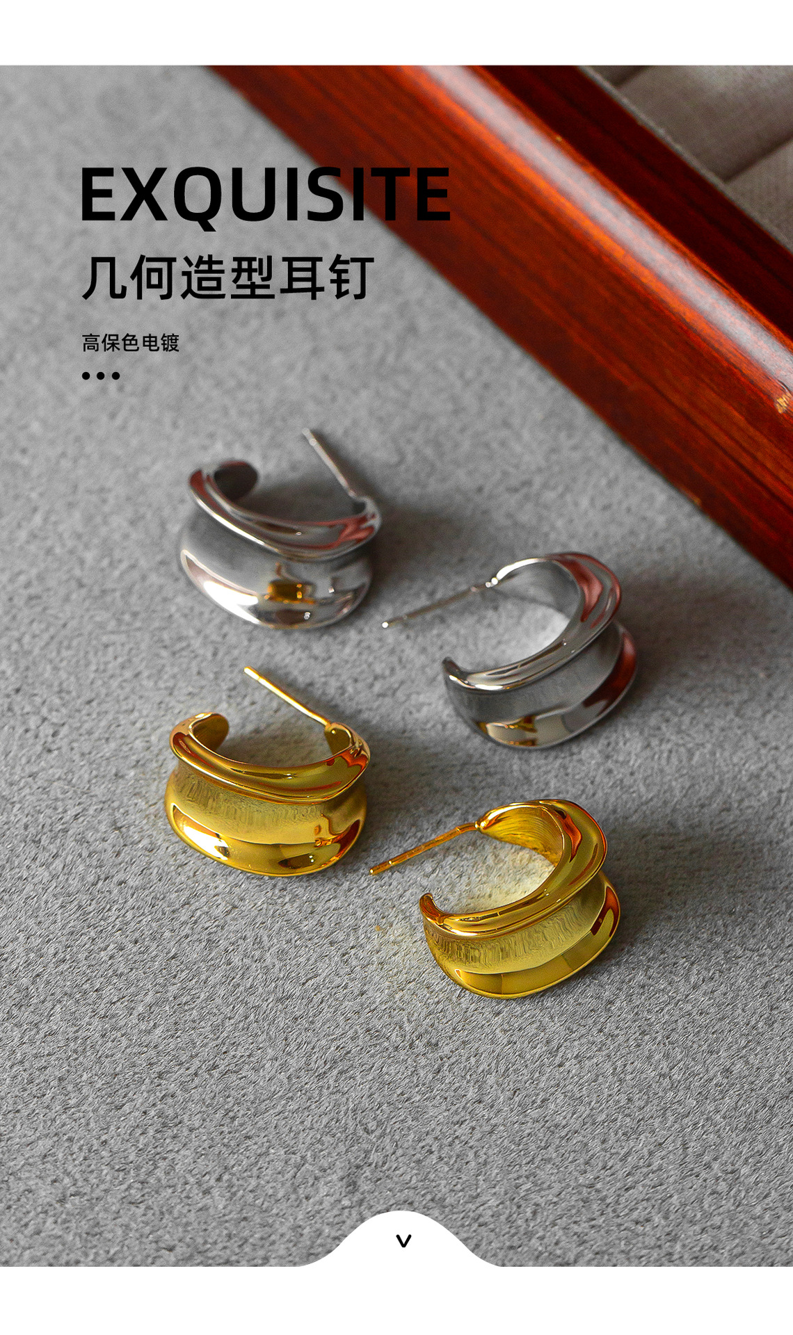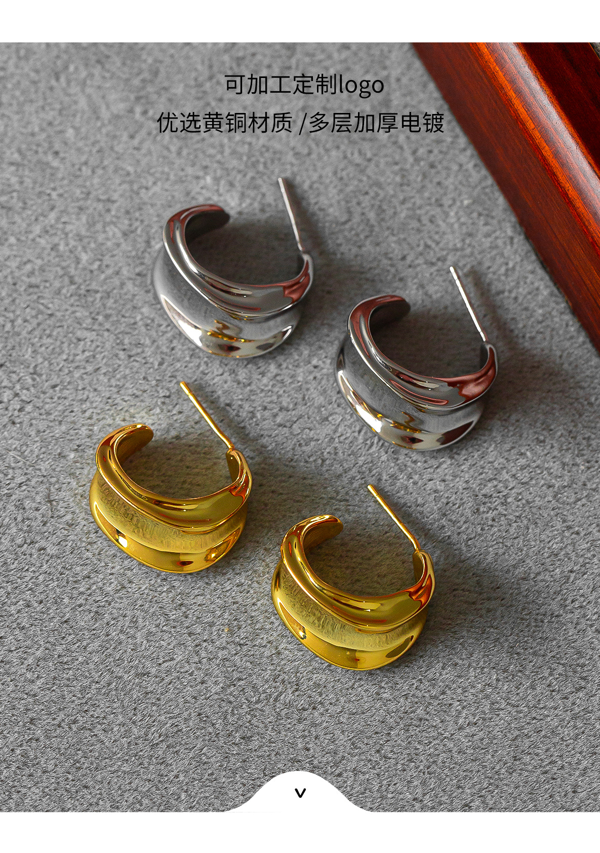 white gold color curved ear studs