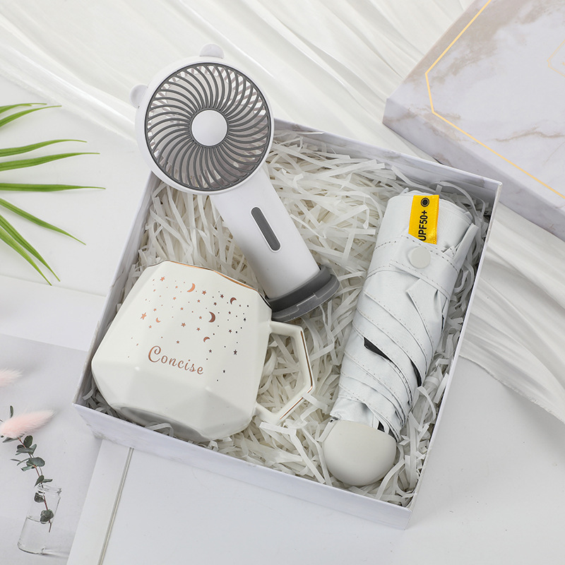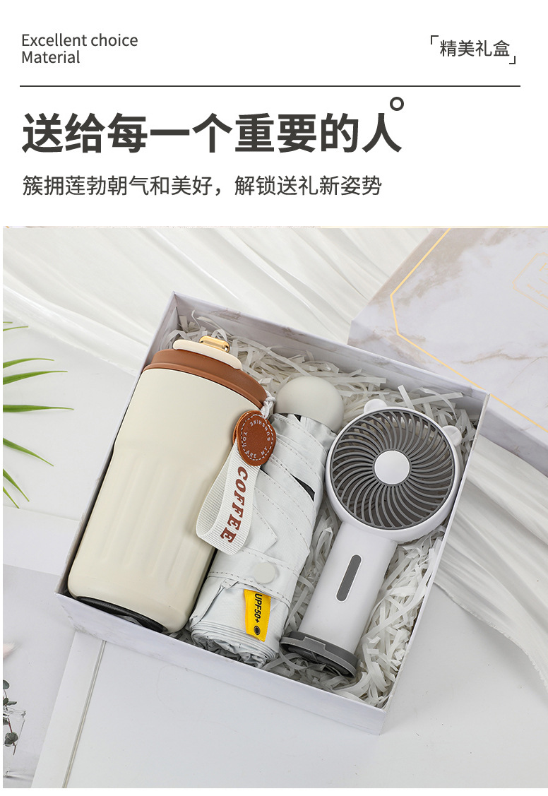 [white 1] thermos cup + umbrella + fan