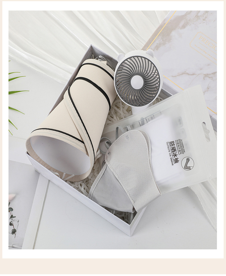 [white 8] sun hat + fan + ice sleeve + mask