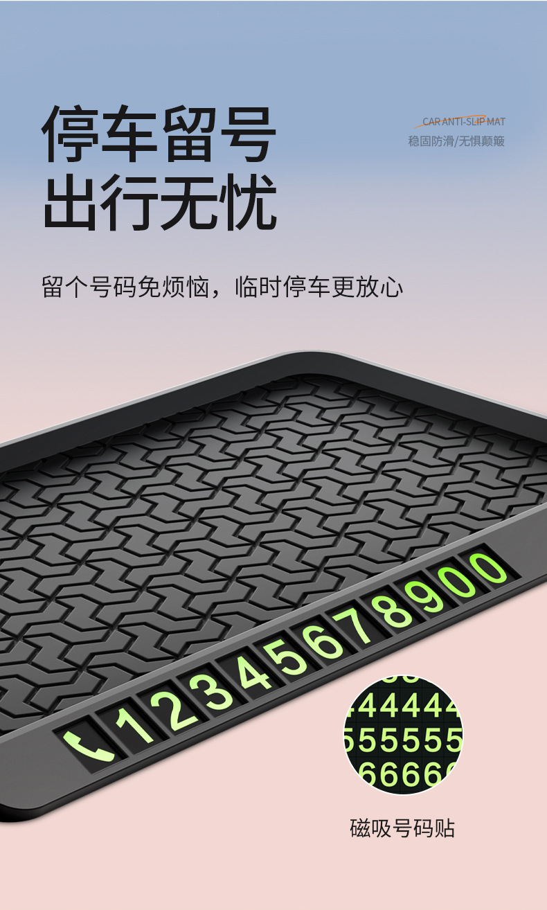 black non-slip mat with parking number plate
