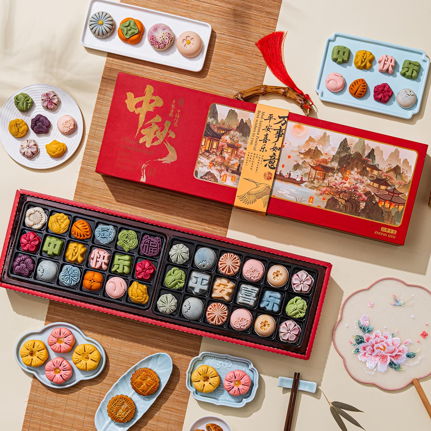 [16 cakes, 16 flavors, 550g in total] bamboo joint portable-mid-autumn festival flower and moon