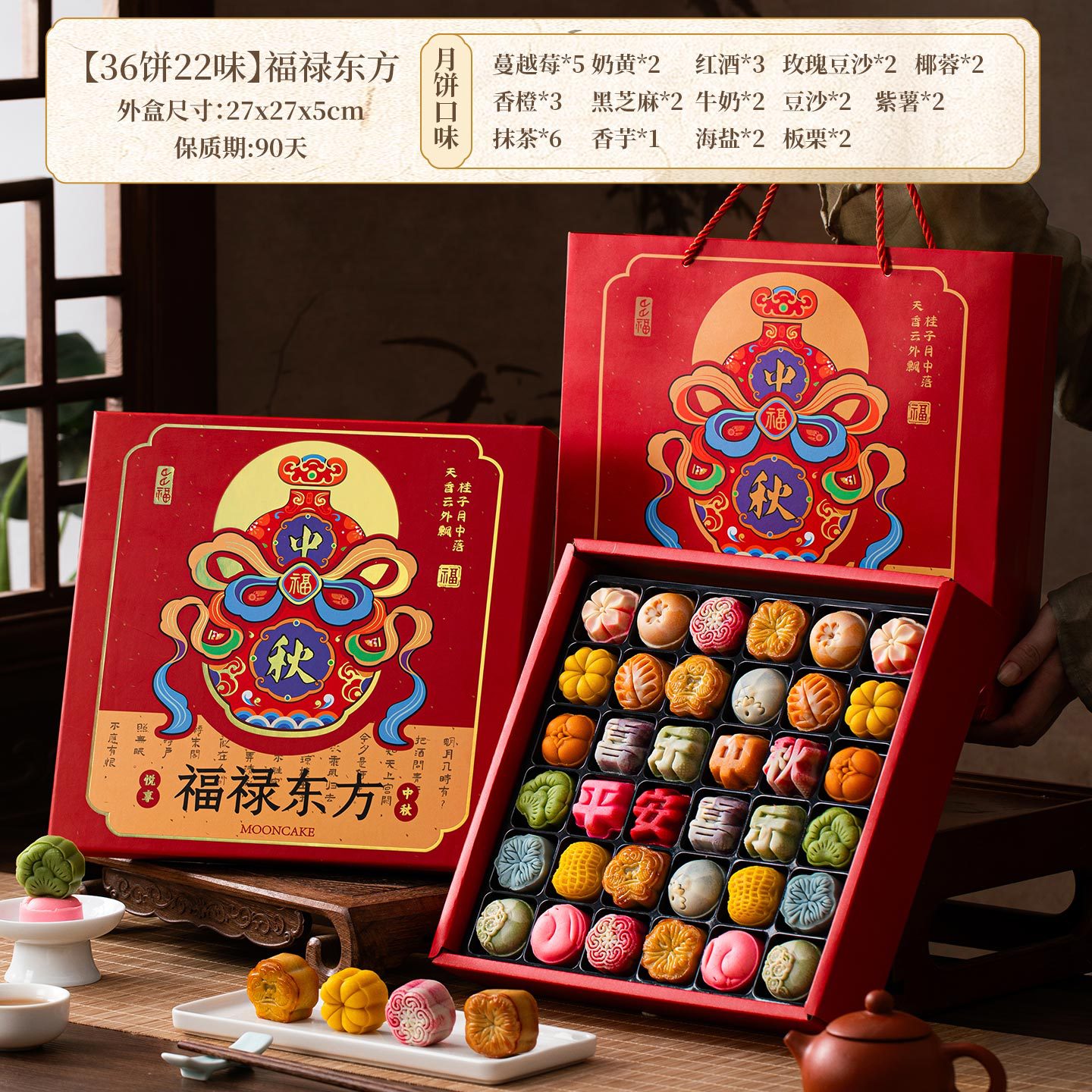 [26 cakes, 23 flavors, 930g in total] three layers, wooden box-happy mid-autumn festival