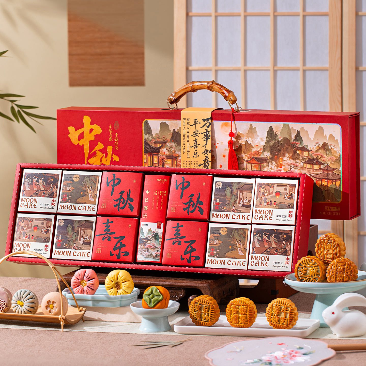 [12 cakes, 6 flavors, 480g in total] three-layer gift box-mid-autumn festival joy