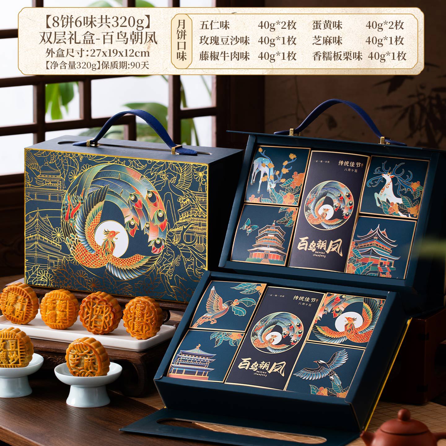 [8 cakes, 6 flavors, 320g in total] double-layer gift box-birds facing the phoenix