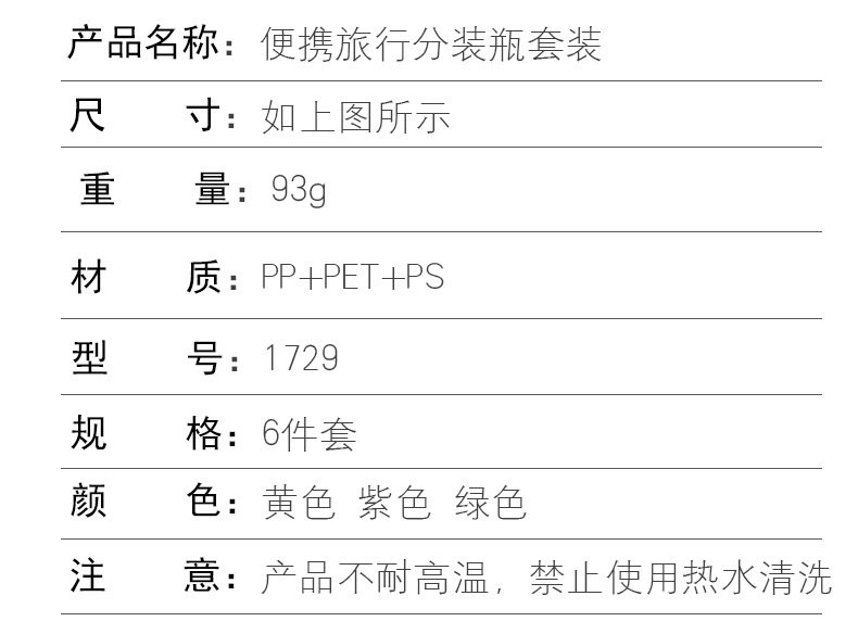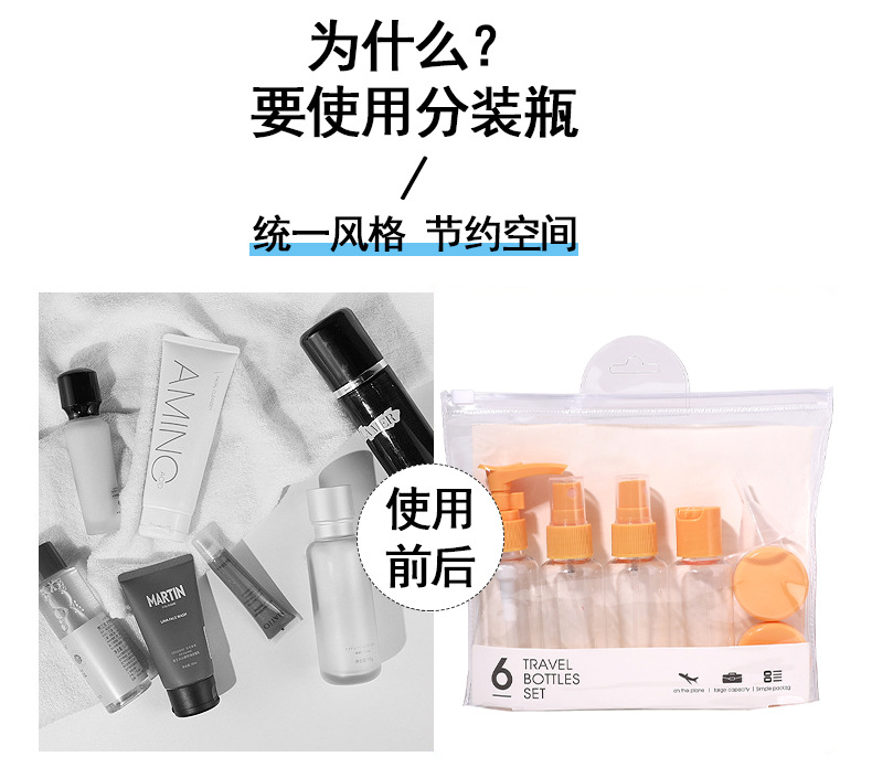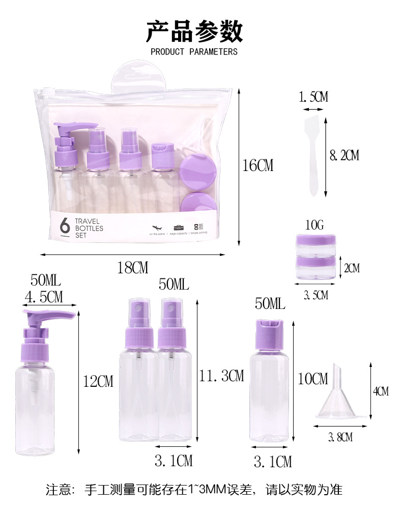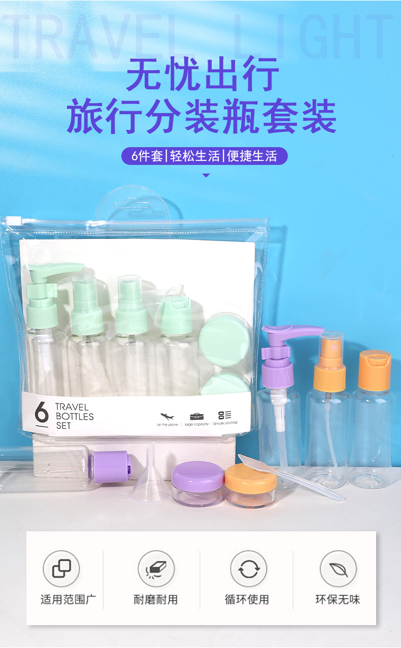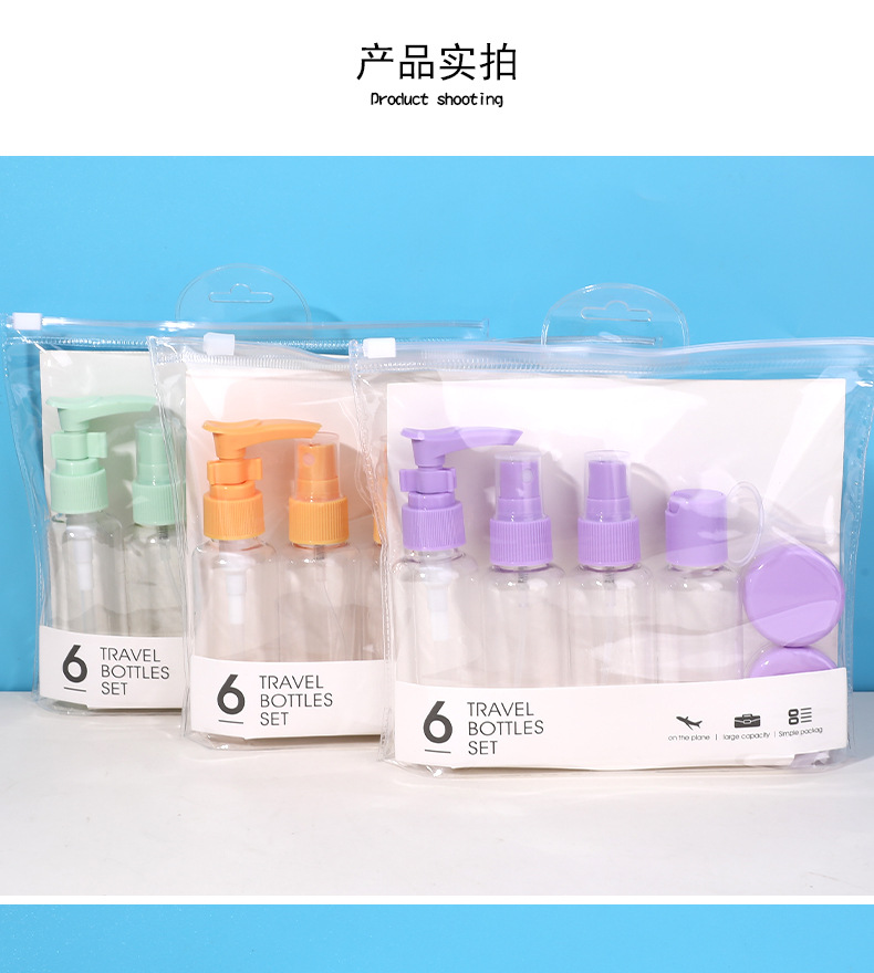 travel empty bottle set 6-piece bag spray bottle storage bottle pp plastic bottle 1729
