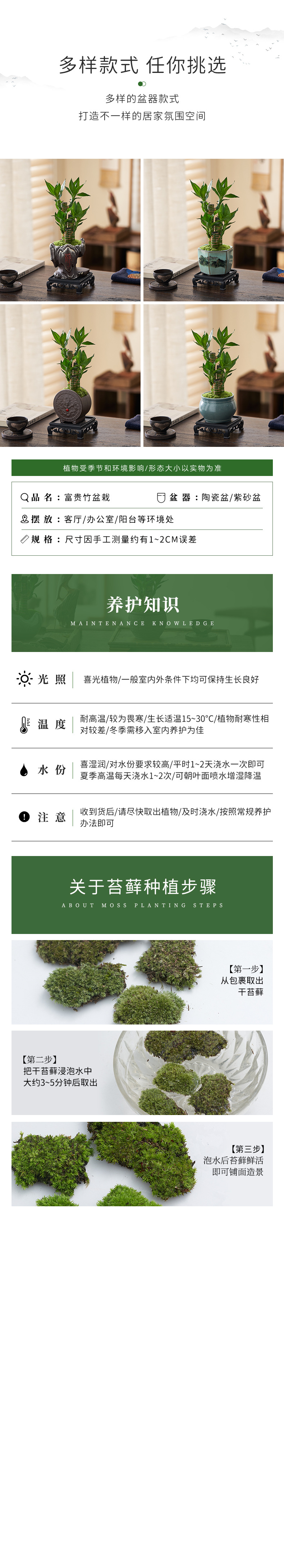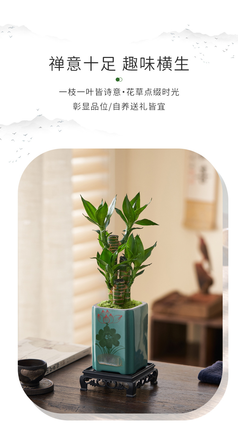 baifu ceramic basin + lucky bamboo + retro base