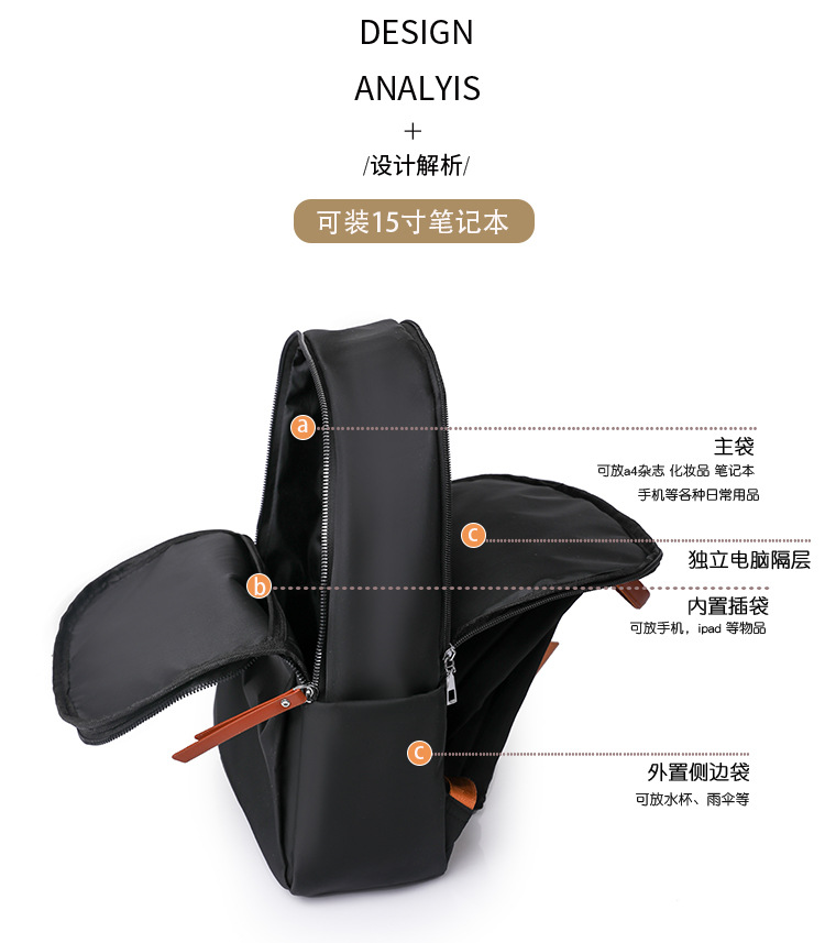 【产品特色】产品使用定制尼龙面料,颜色自然,手感舒适柔软;产品除背后的双肩背带以外另外单独配置同主料单肩带,增加产品的更多背负选择;使用加粗加重挂镀工艺的定制五金配件,光泽度好,拉力强,寿命长;产品内部使用加厚里布,顺滑舒适,不易磨损;内部小袋配置主料包边设计,美观且耐磨;产品使用丝质缝纫线,拉力均匀车线紧密,简洁大方。