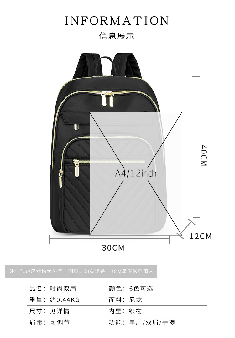 【产品特色】产品使用定制尼龙面料,颜色自然,手感舒适柔软;产品除背后的双肩背带以外另外单独配置同主料单肩带,增加产品的更多背负选择;使用加粗加重挂镀工艺的定制五金配件,光泽度好,拉力强,寿命长;产品内部使用加厚里布,顺滑舒适,不易磨损;内部小袋配置主料包边设计,美观且耐磨;产品使用丝质缝纫线,拉力均匀车线紧密,简洁大方。