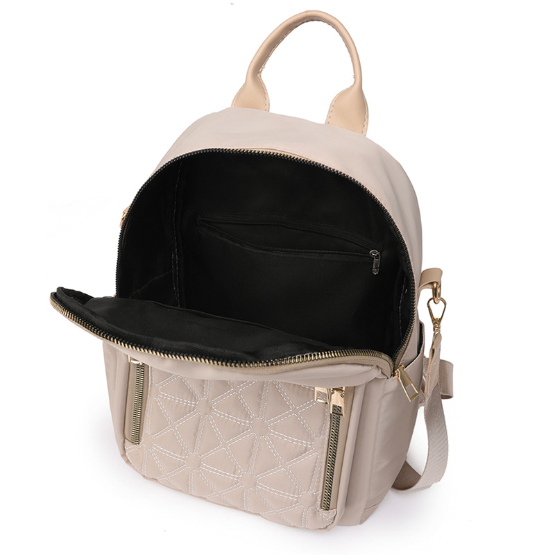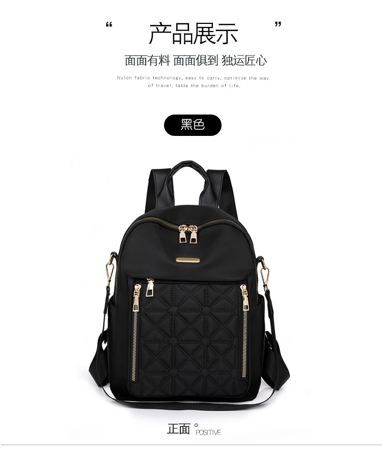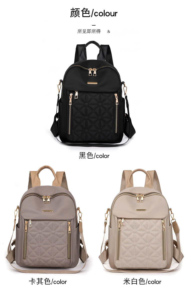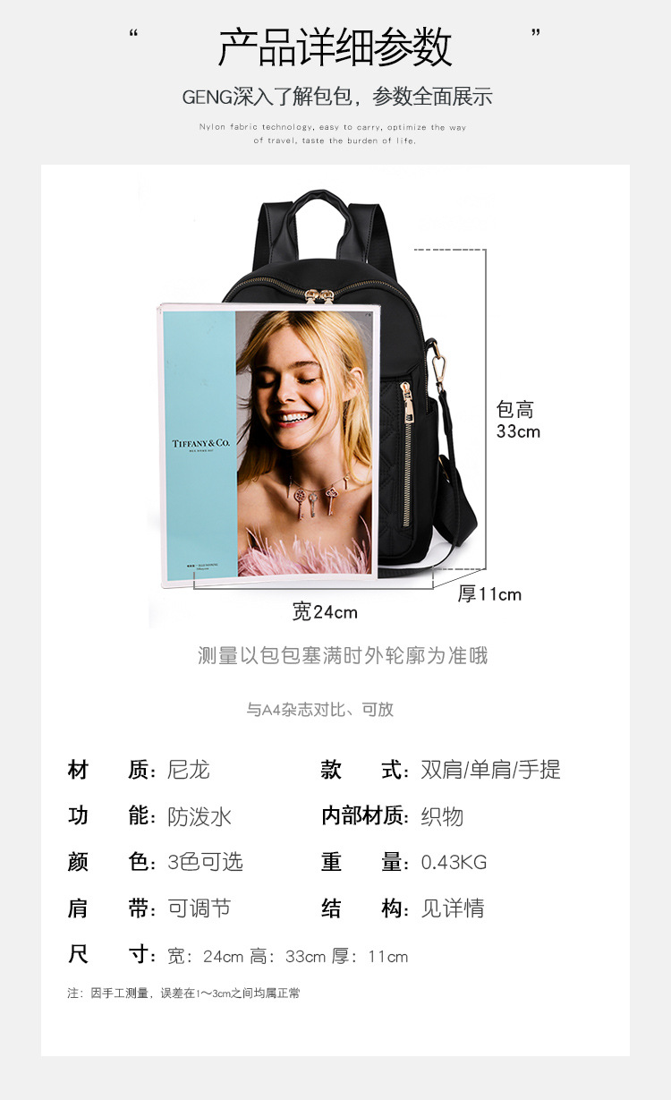 【产品特色】产品使用定制尼龙面料,颜色自然,手感舒适柔软;产品除背后的双肩背带以外另外单独配置同主料单肩带,增加产品的更多背负选择;使用加粗加重挂镀工艺的定制五金配件,光泽度好,拉力强,寿命长;产品内部使用加厚里布,顺滑舒适,不易磨损;内部小袋配置主料包边设计,美观且耐磨;产品使用丝质缝纫线,拉力均匀车线紧密,简洁大方。