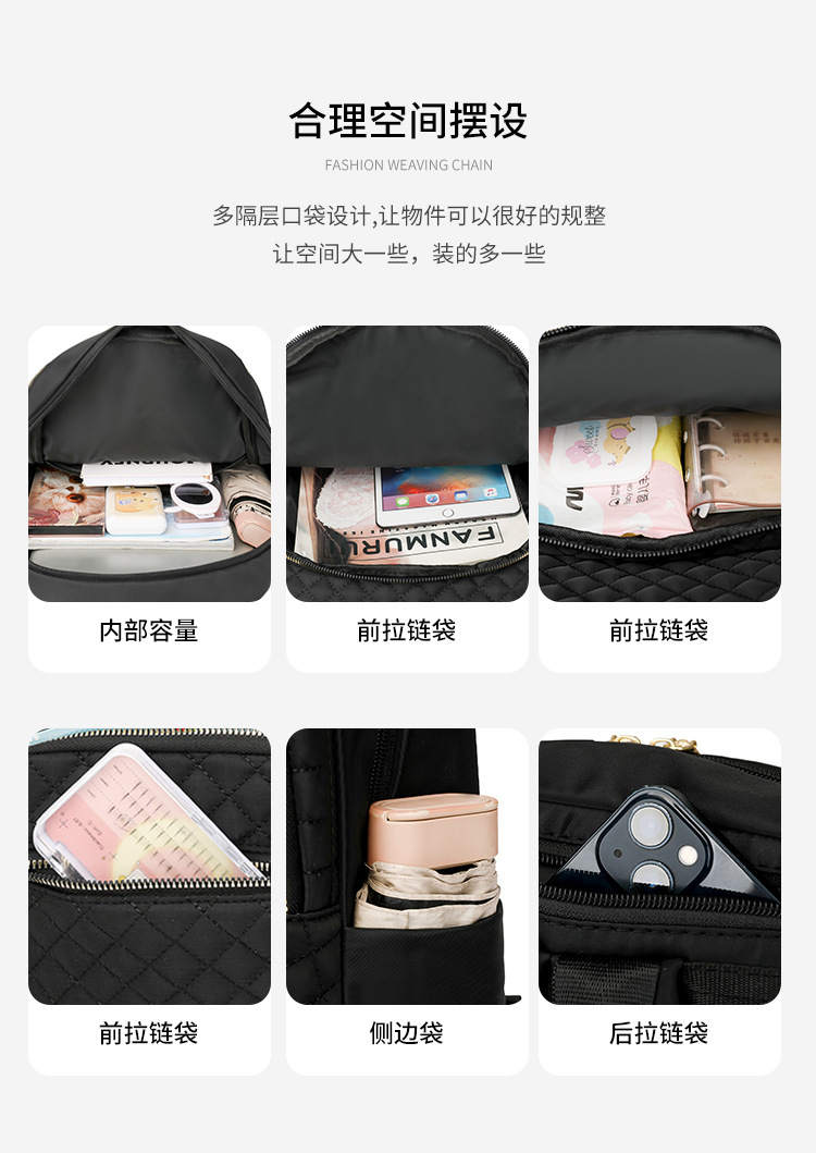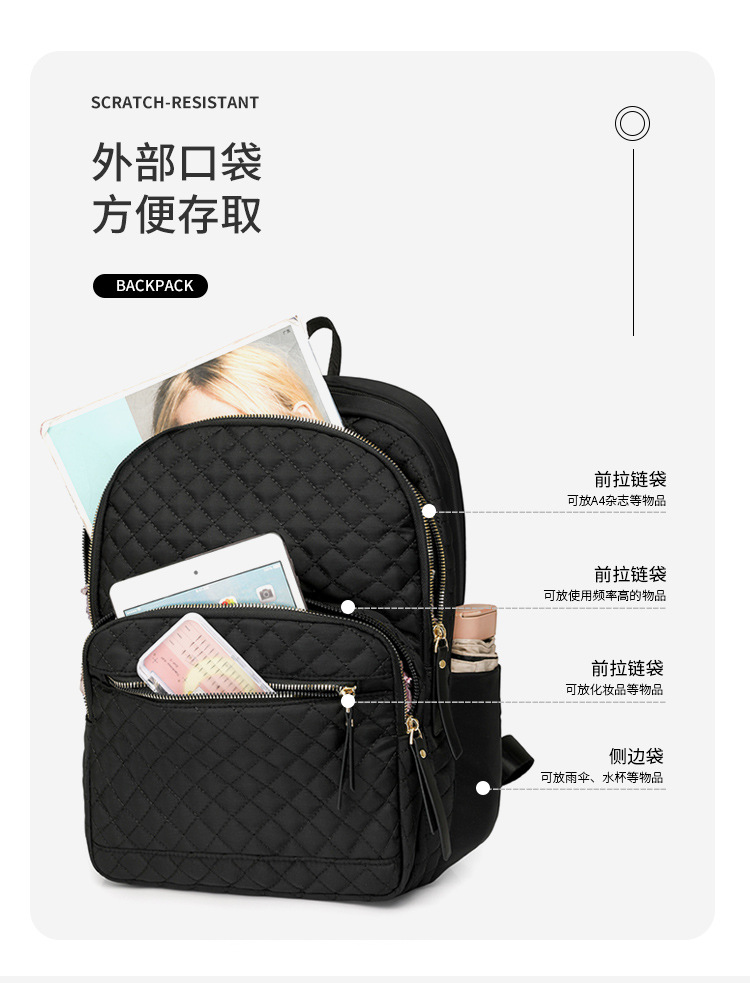 【产品特色】产品使用定制尼龙面料,颜色自然,手感舒适柔软;产品除背后的双肩背带以外另外单独配置同主料单肩带,增加产品的更多背负选择;使用加粗加重挂镀工艺的定制五金配件,光泽度好,拉力强,寿命长;产品内部使用加厚里布,顺滑舒适,不易磨损;内部小袋配置主料包边设计,美观且耐磨;产品使用丝质缝纫线,拉力均匀车线紧密,简洁大方。