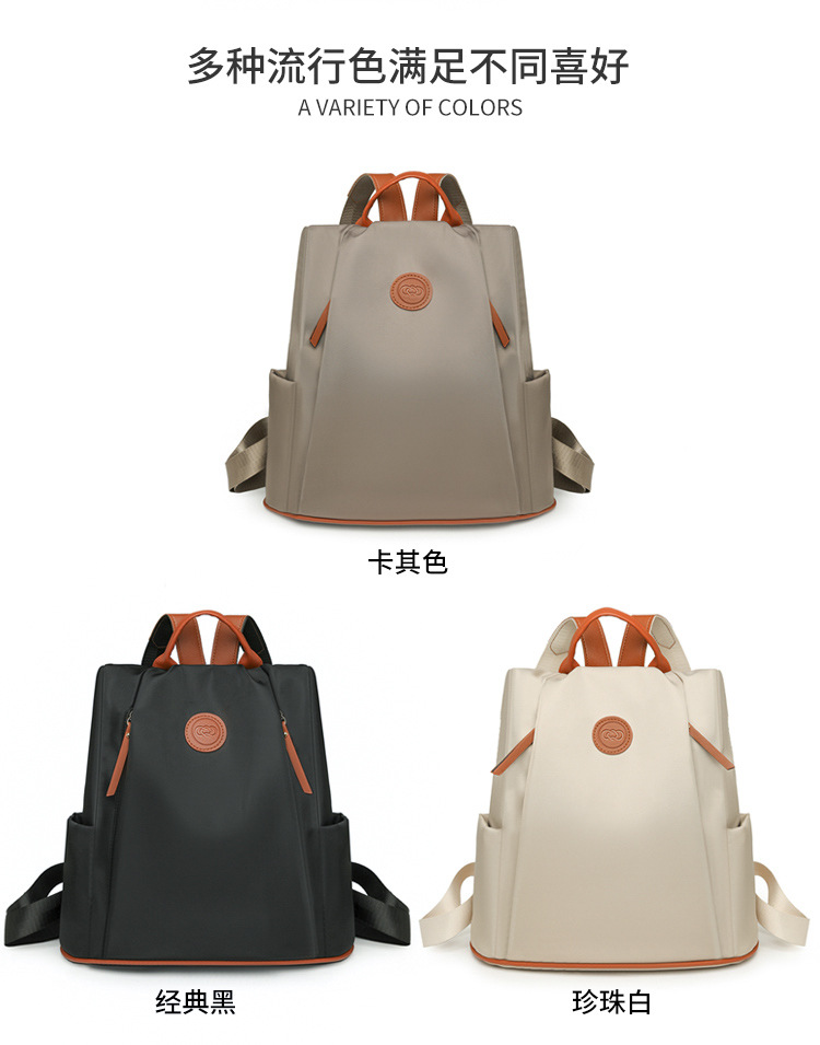 【产品特色】产品使用定制牛津布面料,颜色自然,手感舒适柔软;产品除背后的双肩背带以外另外单独配置同主料单肩带,增加产品的更多背负选择;使用加粗加重挂镀工艺的定制五金配件,光泽度好,拉力强,寿命长;产品内部使用加厚里布,顺滑舒适,不易磨损;内部小袋配置主料包边设计,美观且耐磨;产品使用丝质缝纫线,拉力均匀车线紧密,简洁大方。