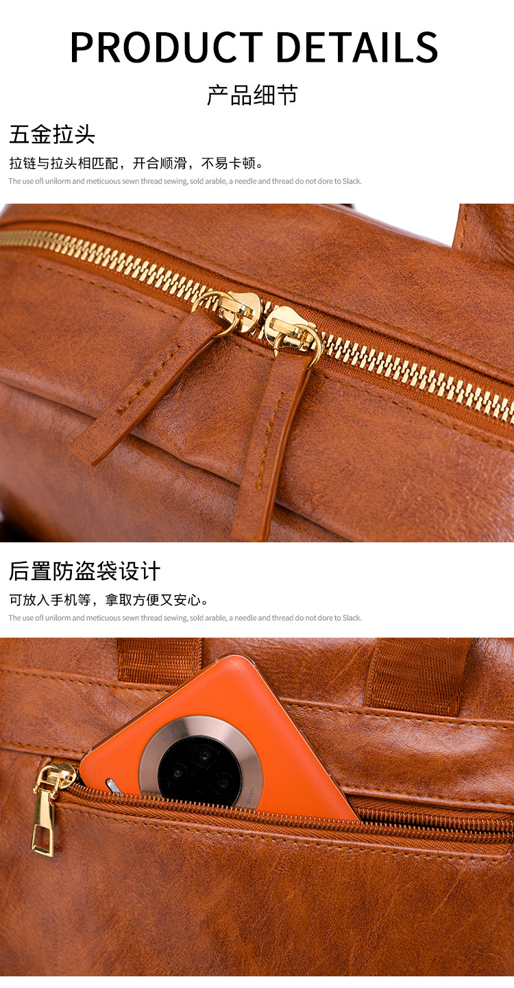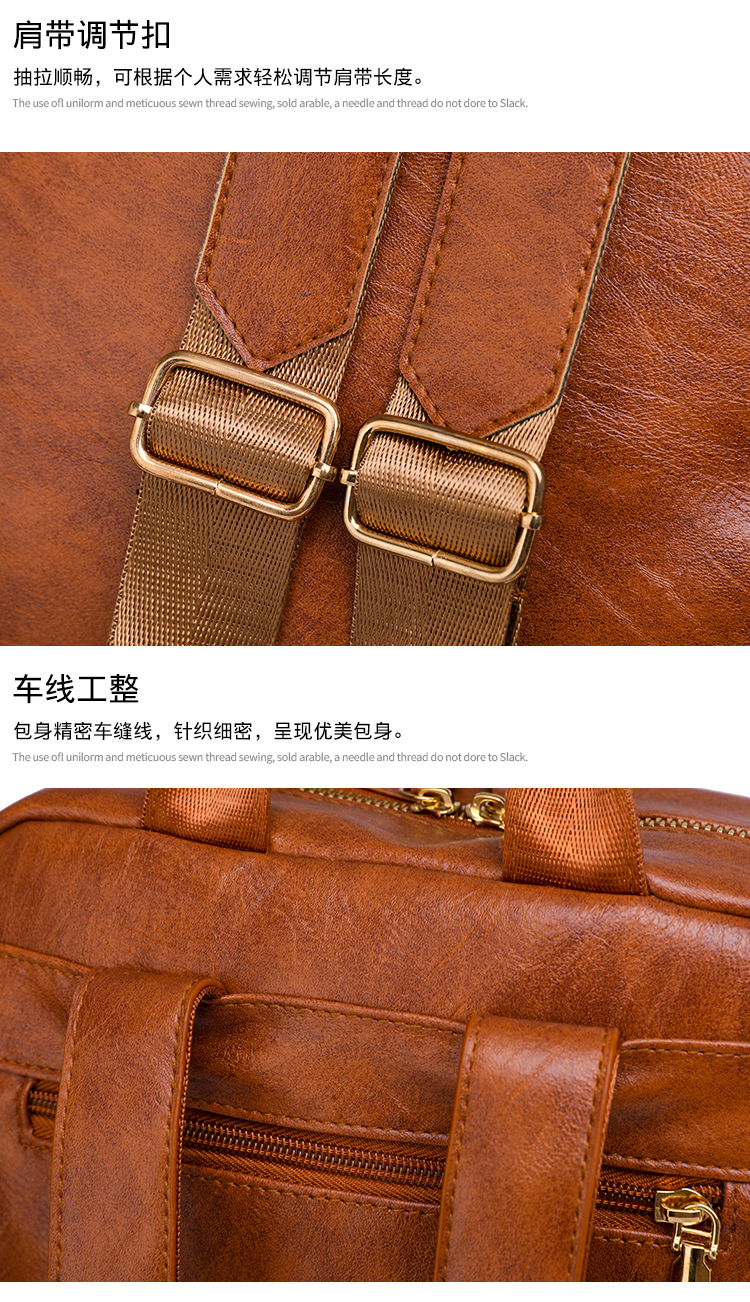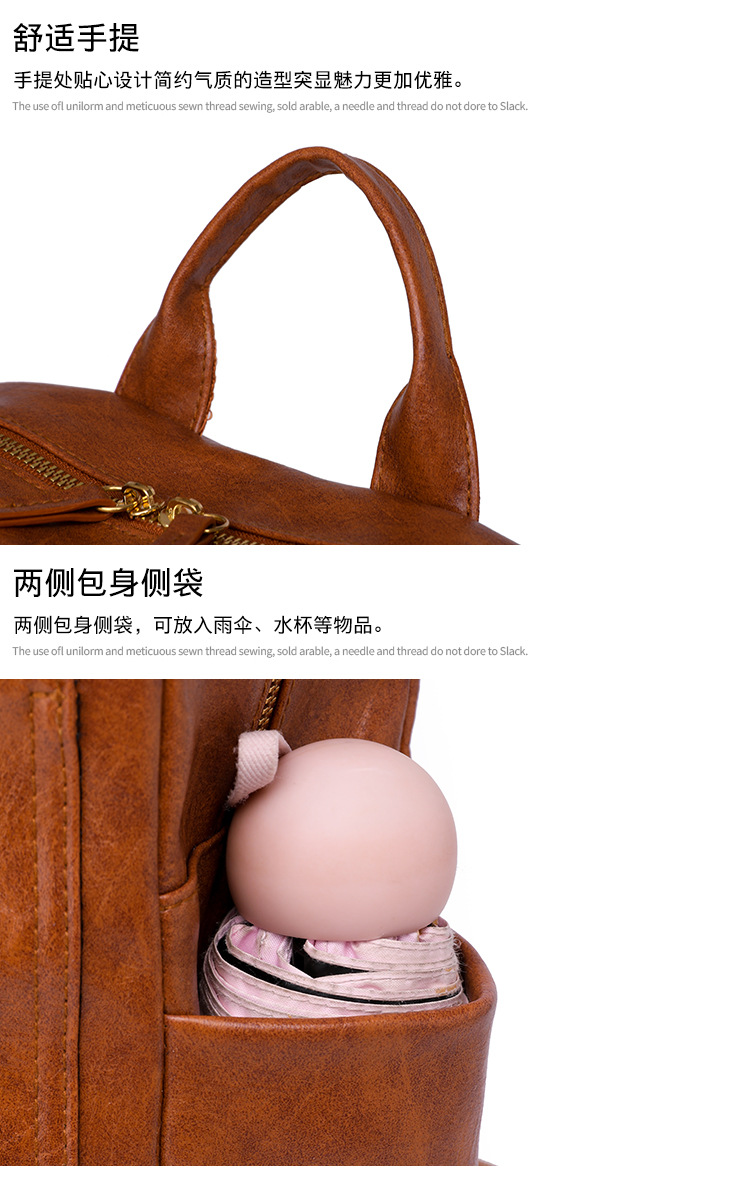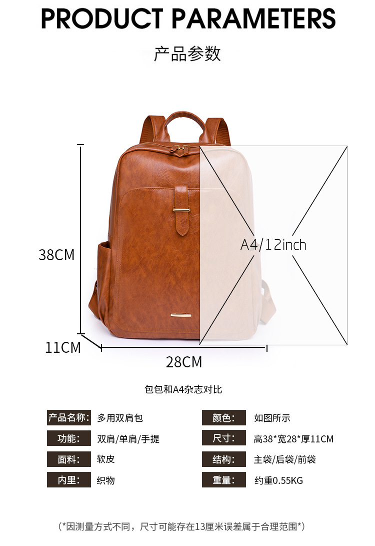 【产品特色】产品使用定制仿牛仔布纹路PU面料,颜色自然,手感舒适柔软;产品除背后的双肩背带以外另外单独配置同主料单肩带,增加产品的更多背负选择;使用加粗加重挂镀工艺的定制五金配件,光泽度好,拉力强,寿命长;产品内部使用加厚里布,顺滑舒适,不易磨损;内部小袋配置主料包边设计,美观且耐磨;产品使用丝质缝纫线,拉力均匀车线紧密,简洁大方。