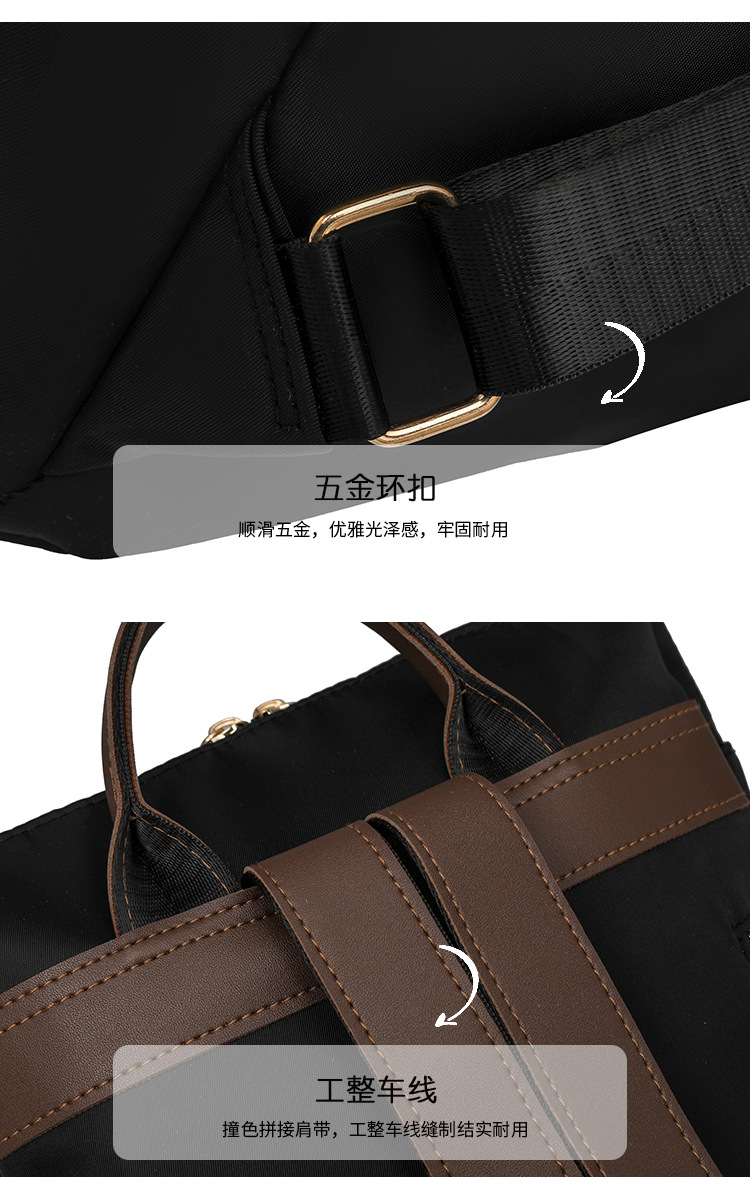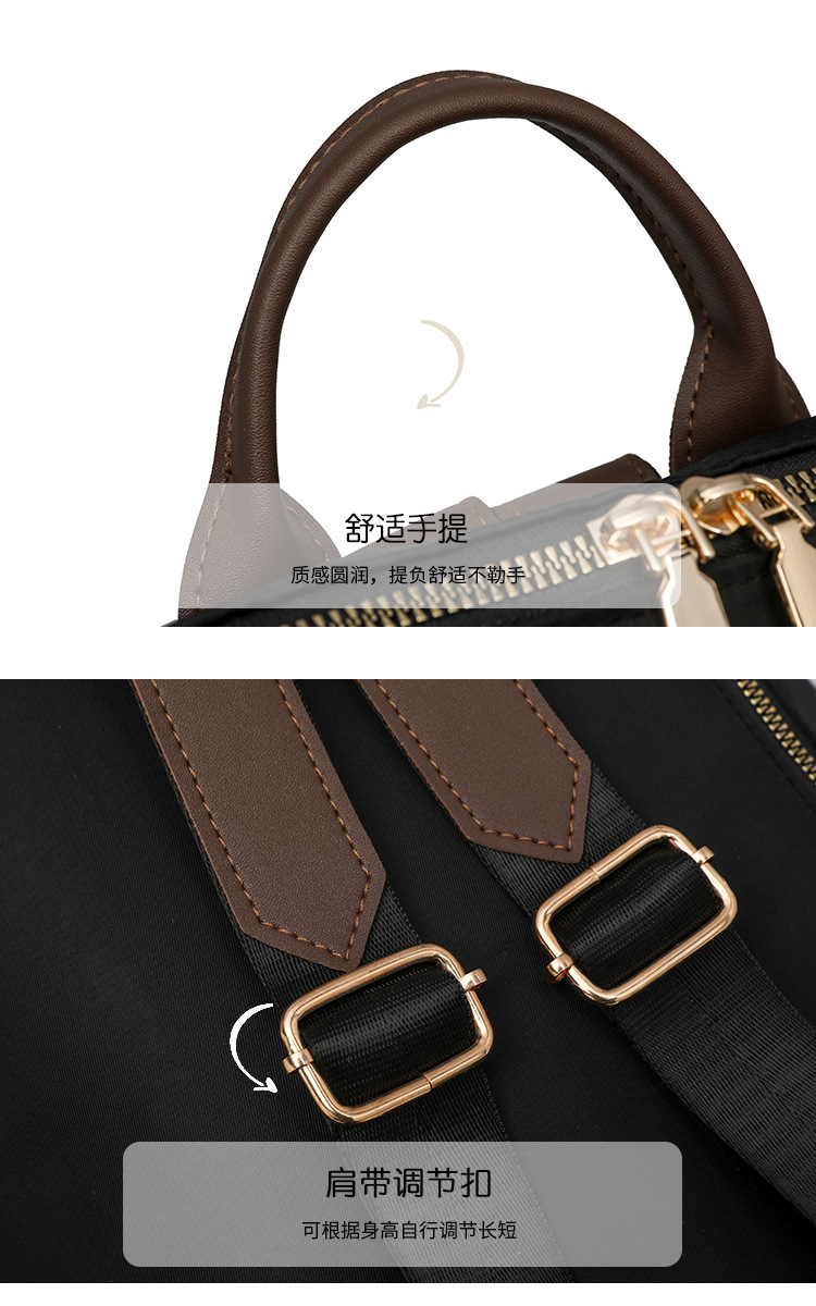 【产品特色】产品使用定制尼龙面料,颜色自然,手感舒适柔软;产品除背后的双肩背带以外另外单独配置同主料单肩带,增加产品的更多背负选择;使用加粗加重挂镀工艺的定制五金配件,光泽度好,拉力强,寿命长;产品内部使用加厚里布,顺滑舒适,不易磨损;内部小袋配置主料包边设计,美观且耐磨;产品使用丝质缝纫线,拉力均匀车线紧密,简洁大方。