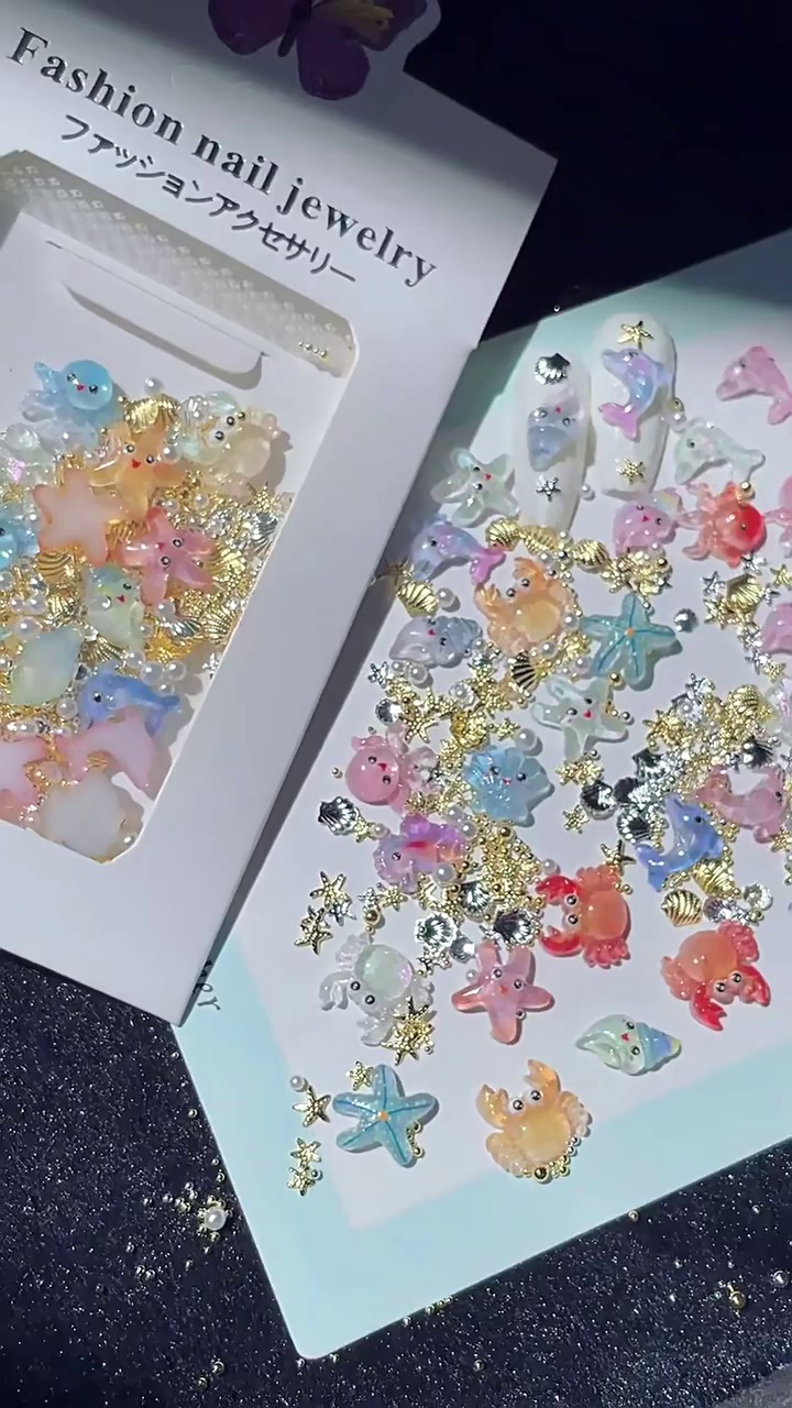 cross-border manicure marine cartoon material package marine small animal xingx shell rivet pearl steel ball mixed decorations