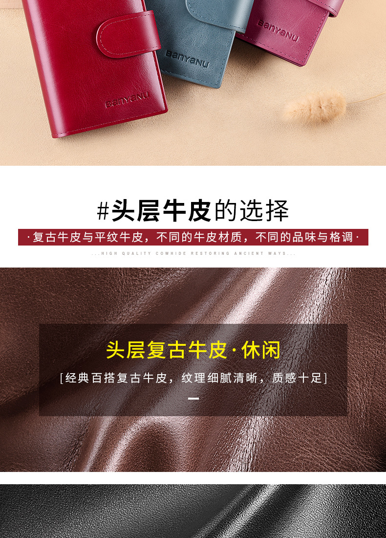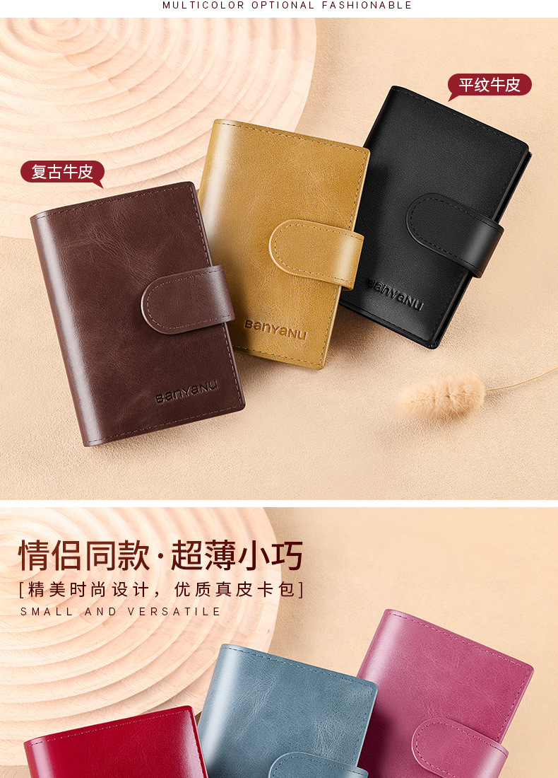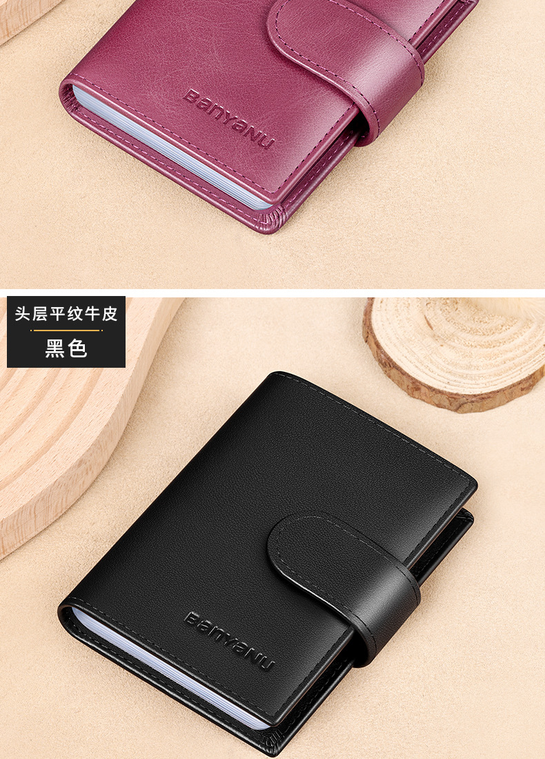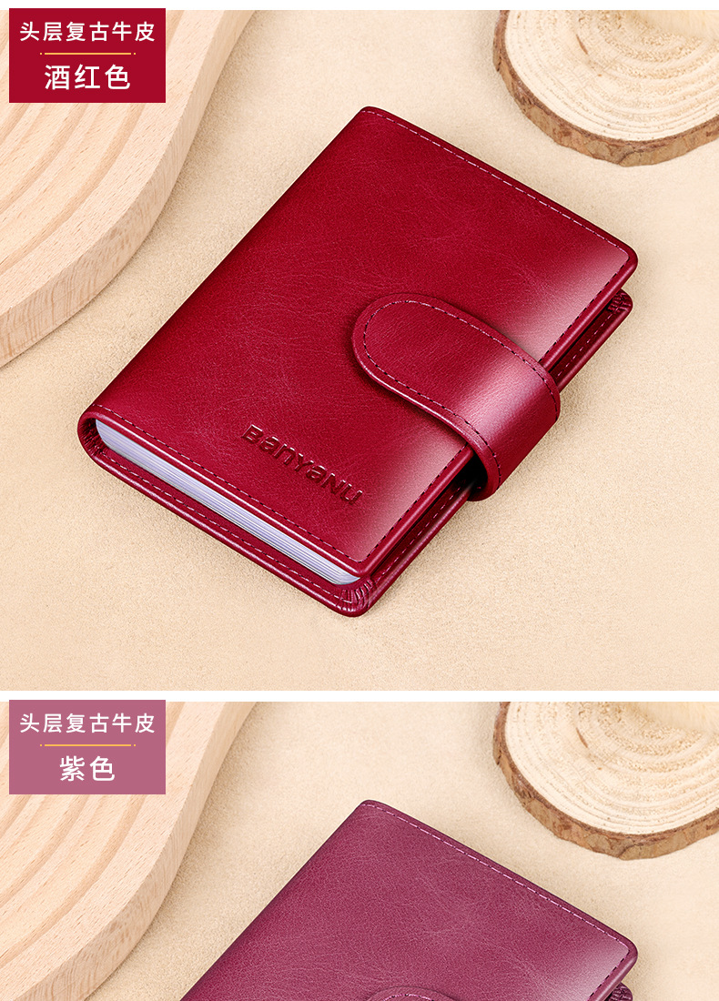 burgundy-24 card position (first layer cowhide) anti-theft swiping