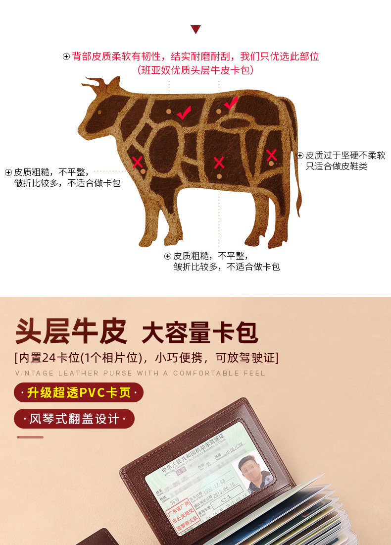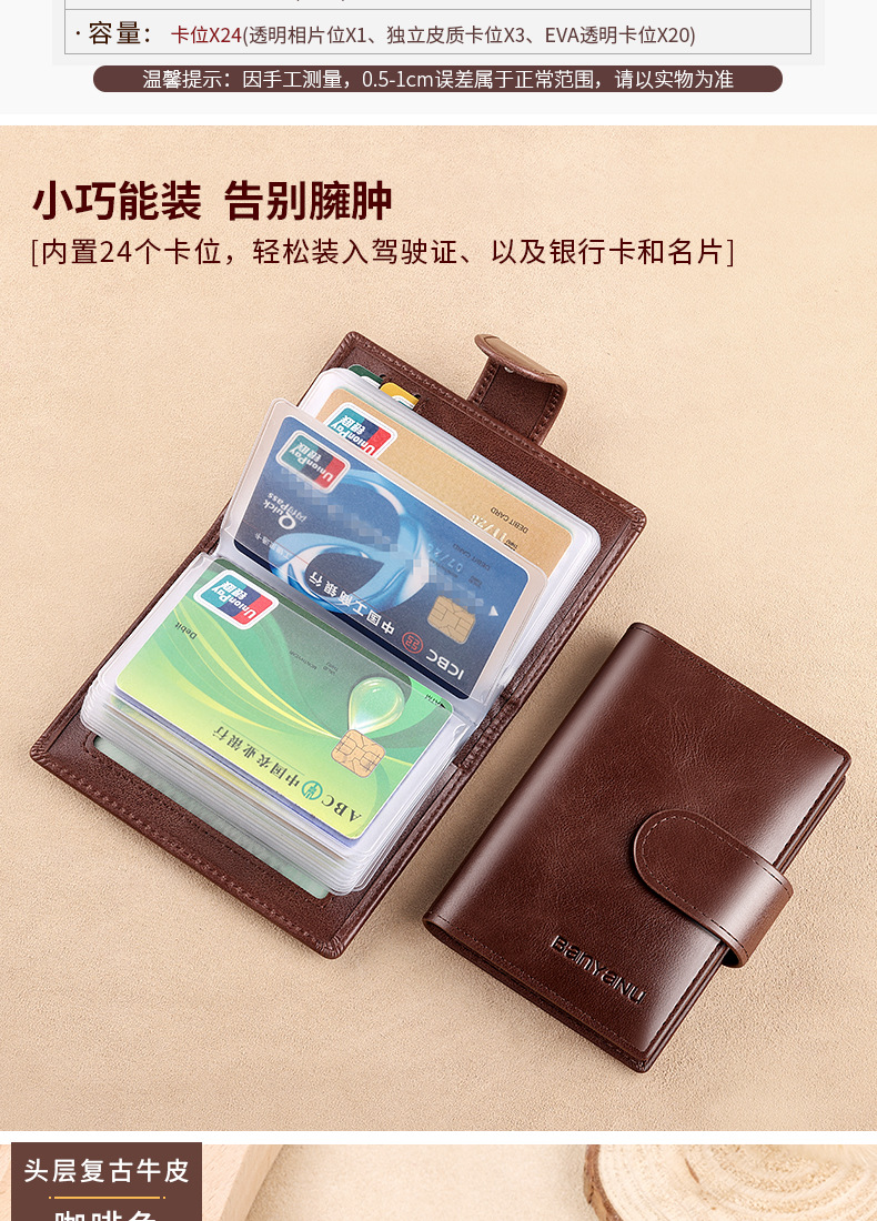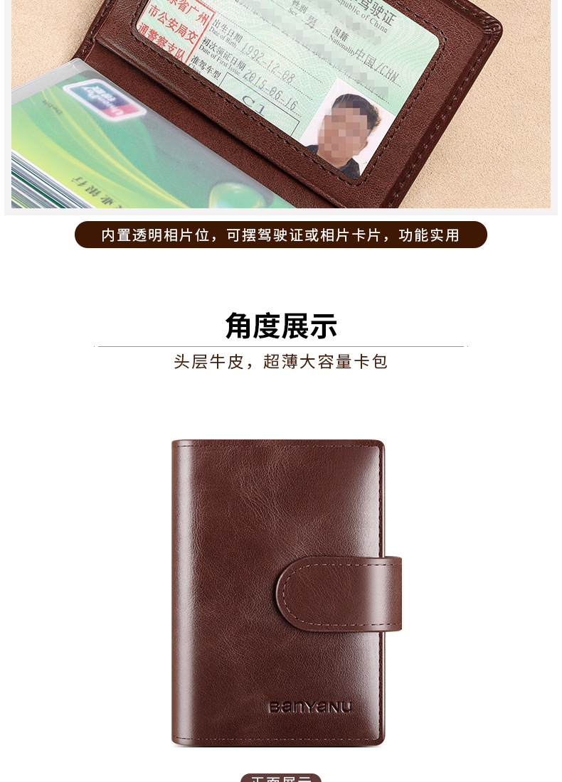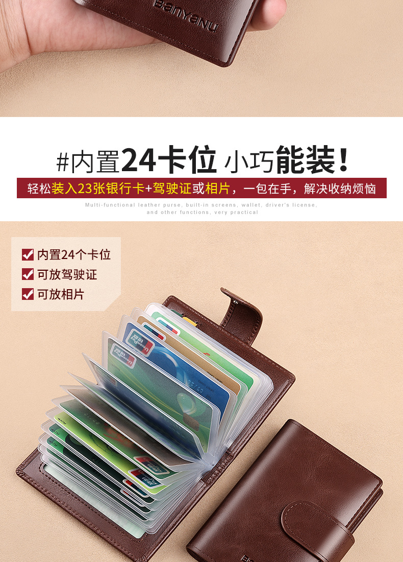 brown-24 card position (first layer cowhide) anti-theft swiping