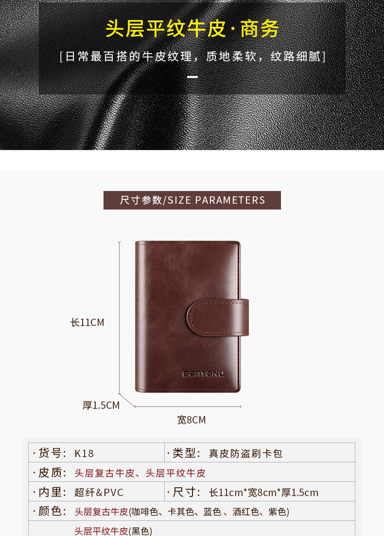 black-24 card position (first layer cowhide) anti-theft swiping