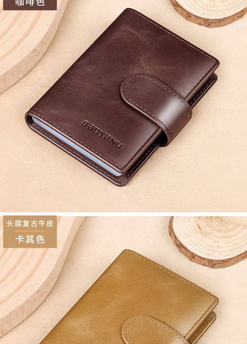 khaki-24 card position (first layer cowhide) anti-theft swiping