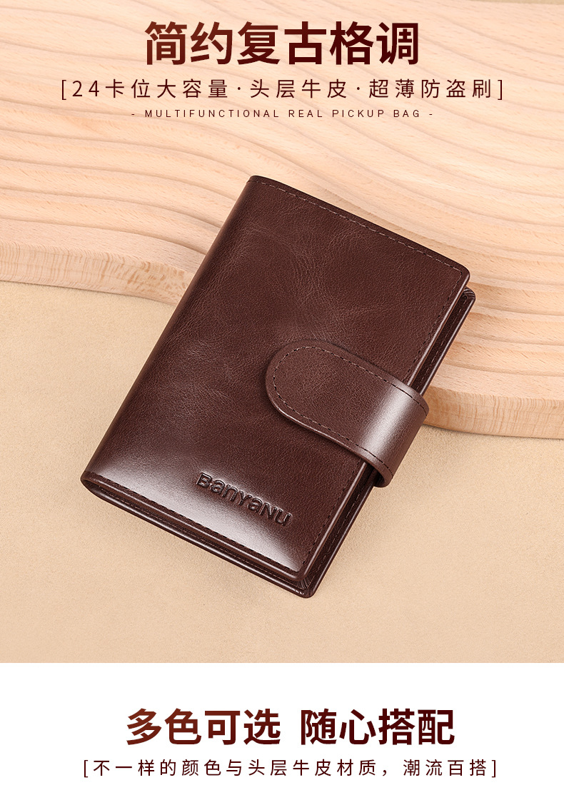 brown-24 card position (oil wax first layer cowhide) anti-theft swiping