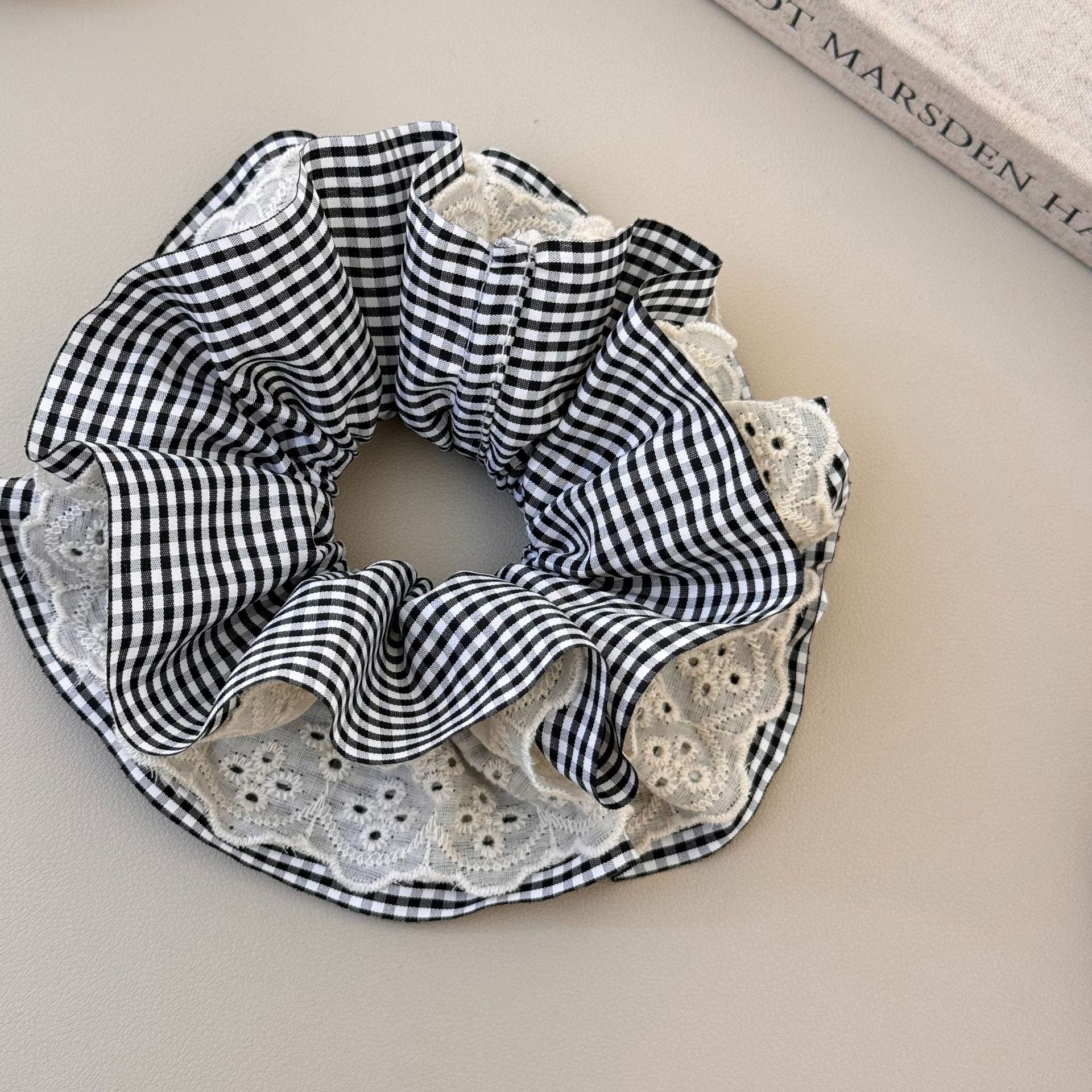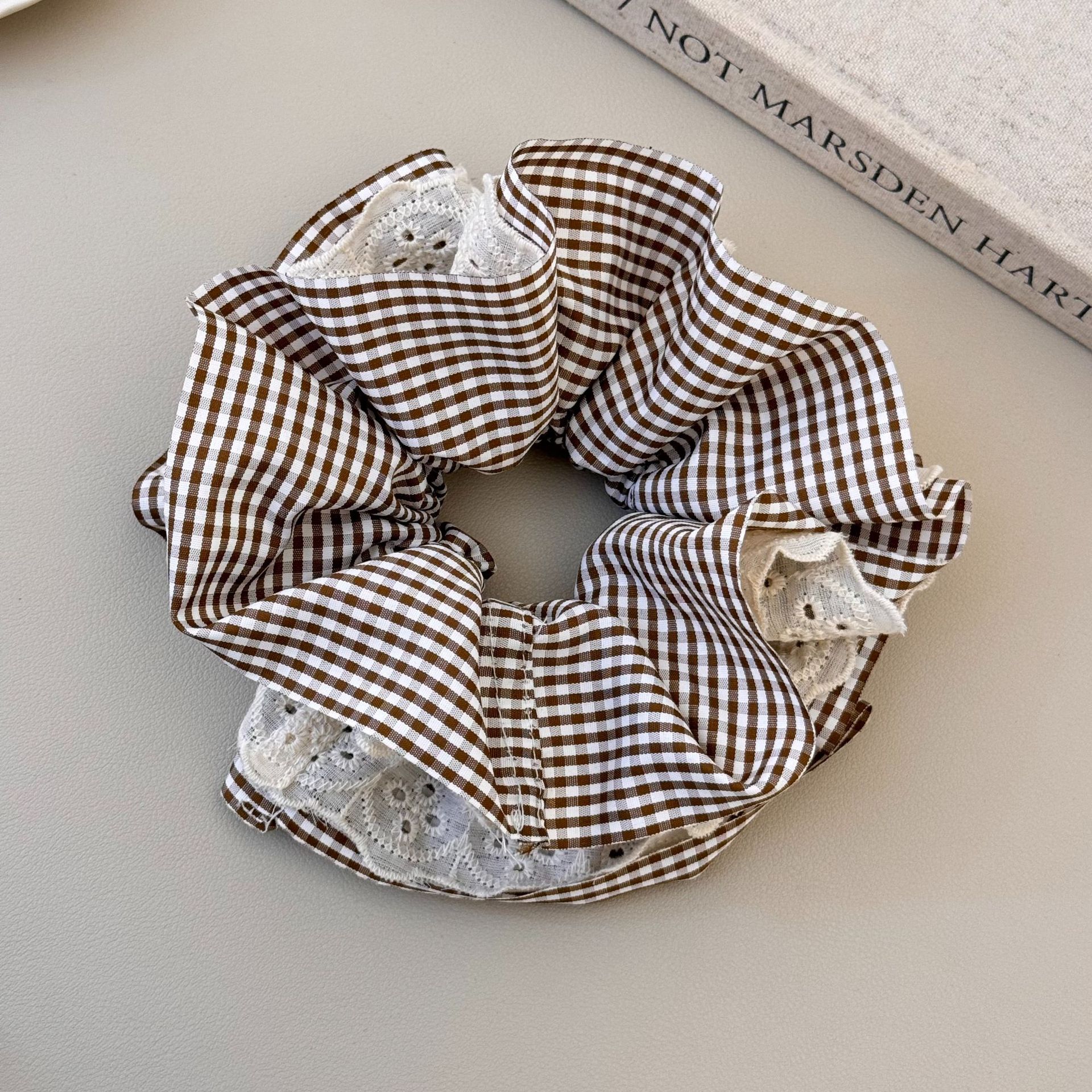 brown plaid hair ring