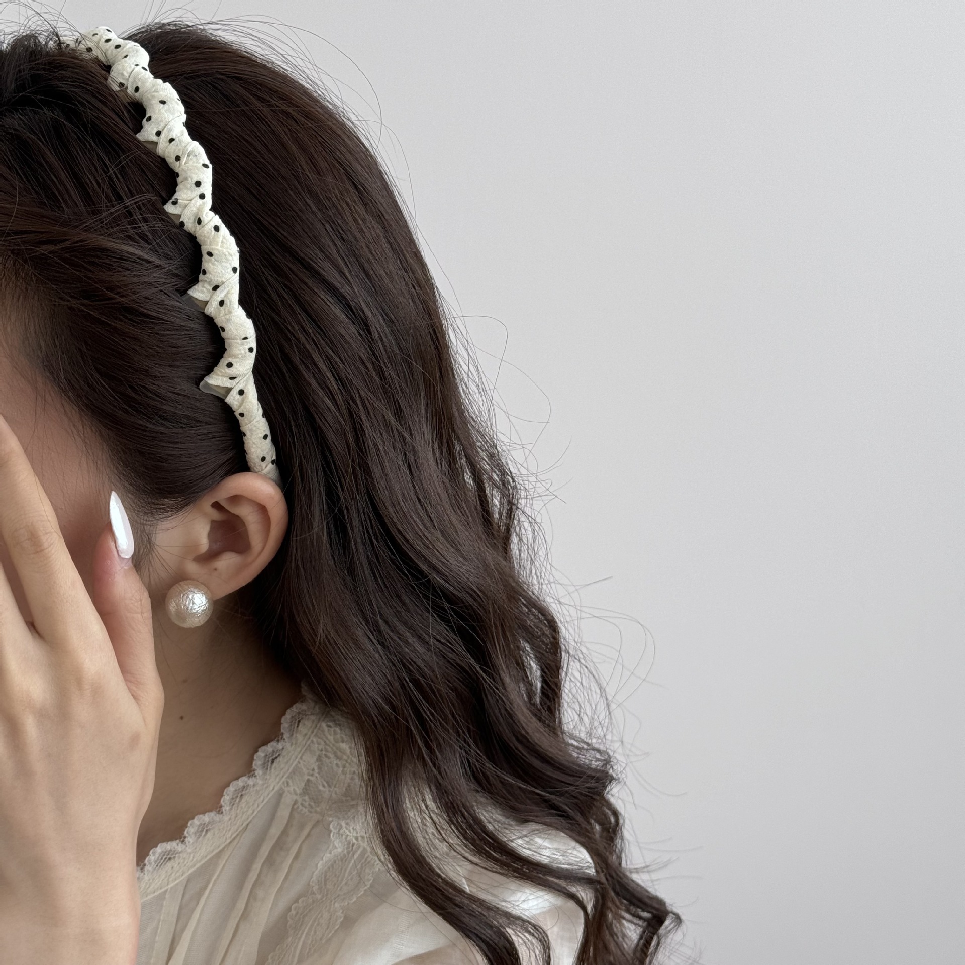 beige-polka dot headband