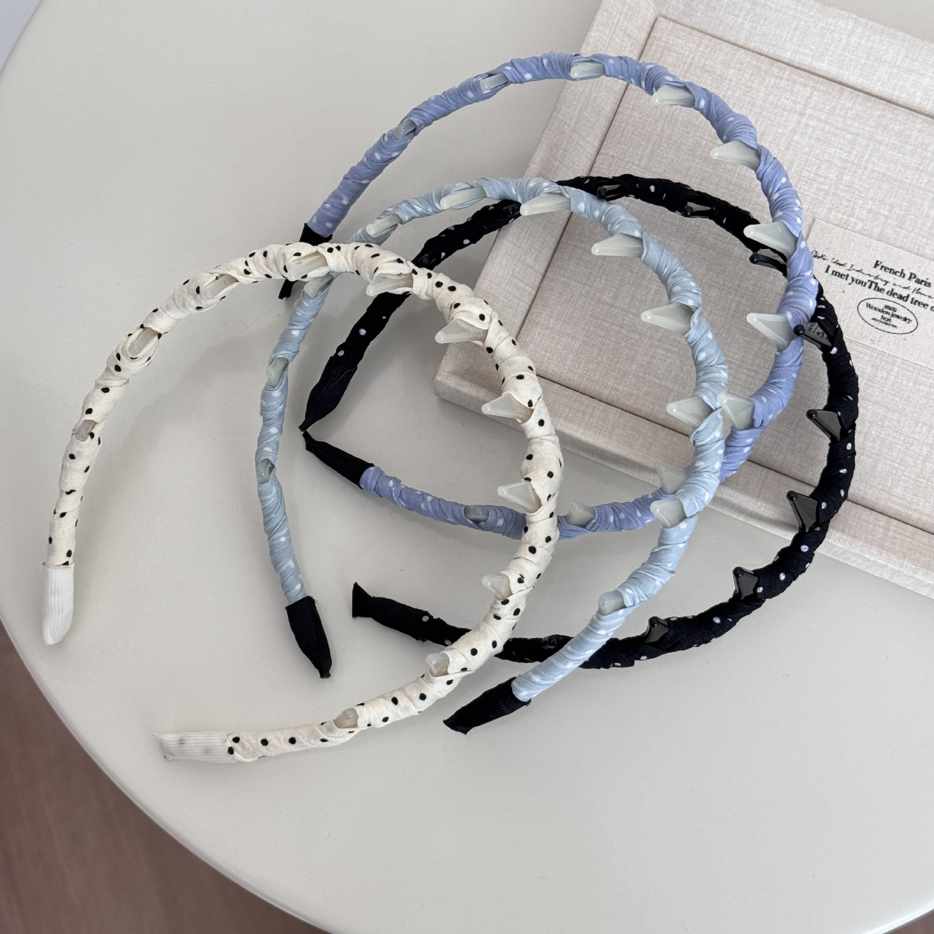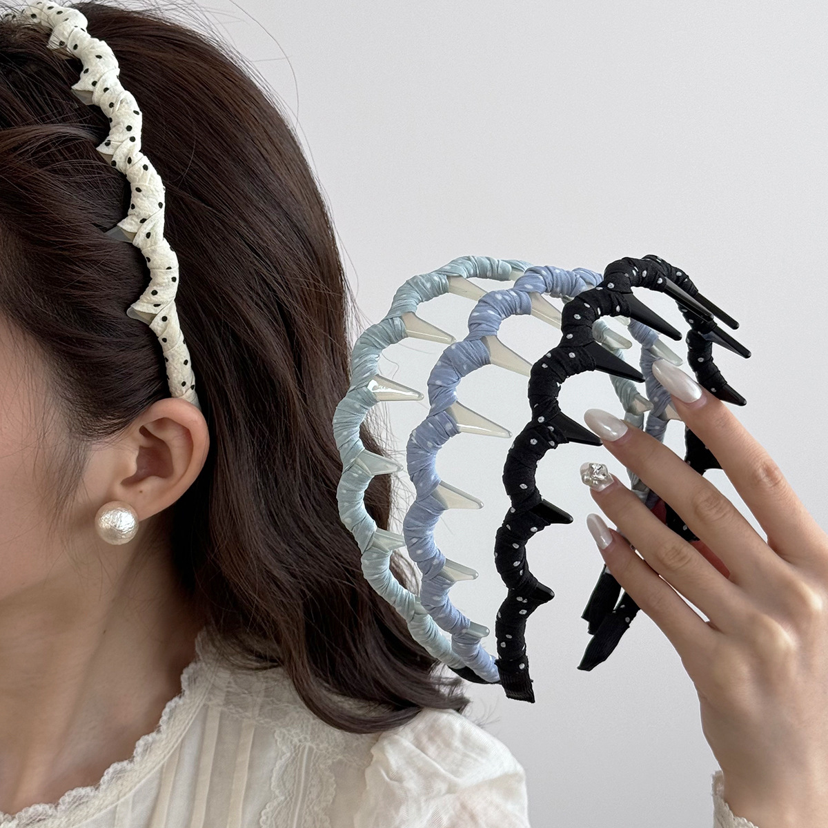 black-polka dot headband