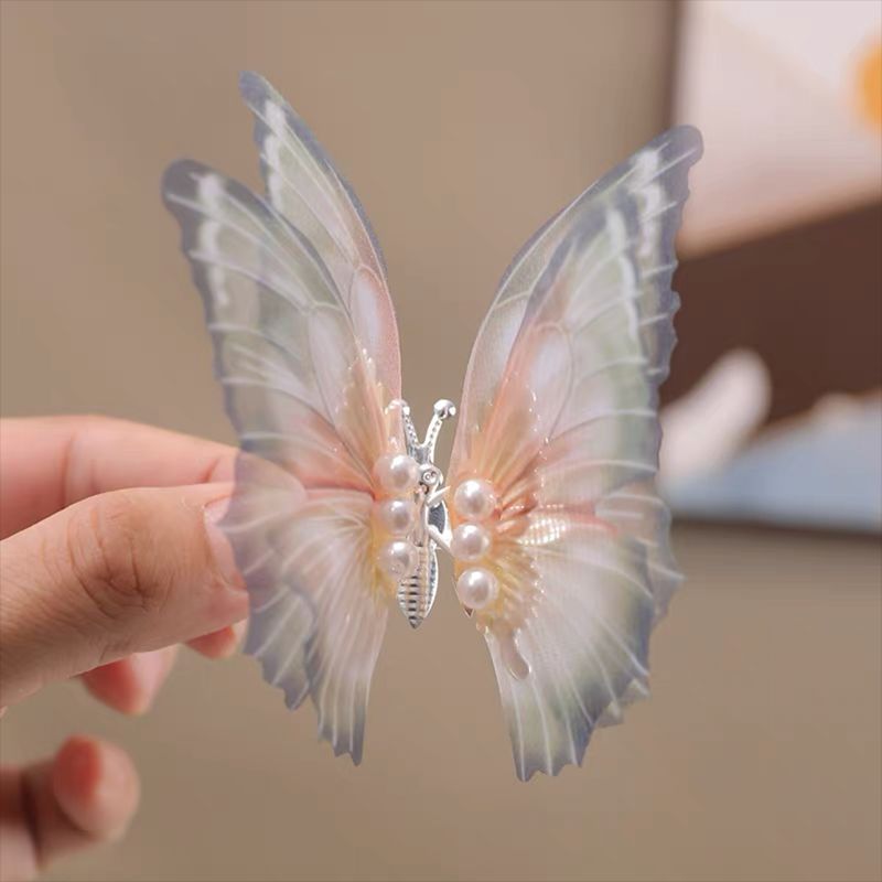 beating butterfly hair clip-gray white
