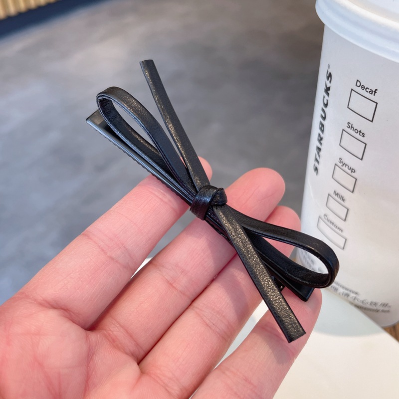 black leather bow