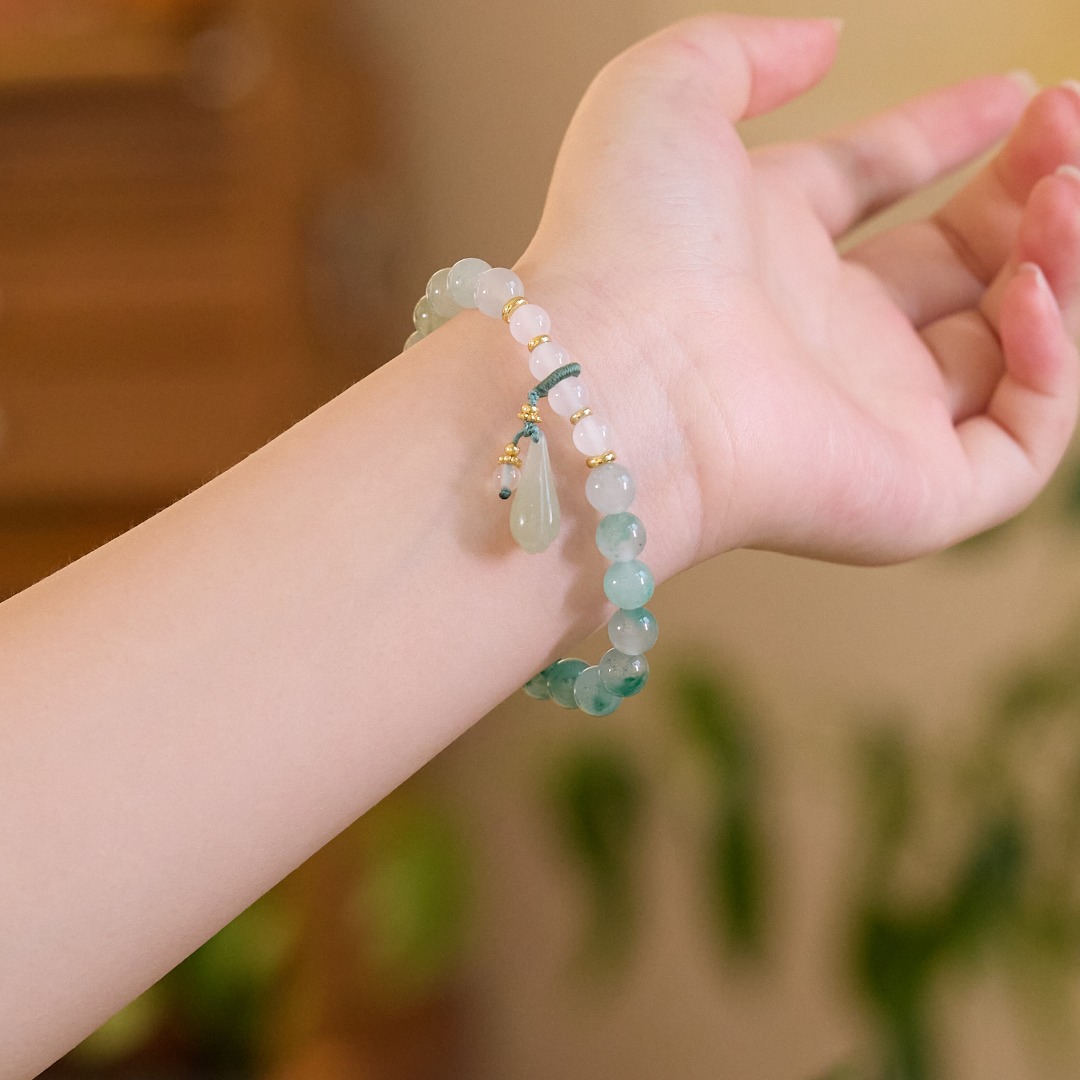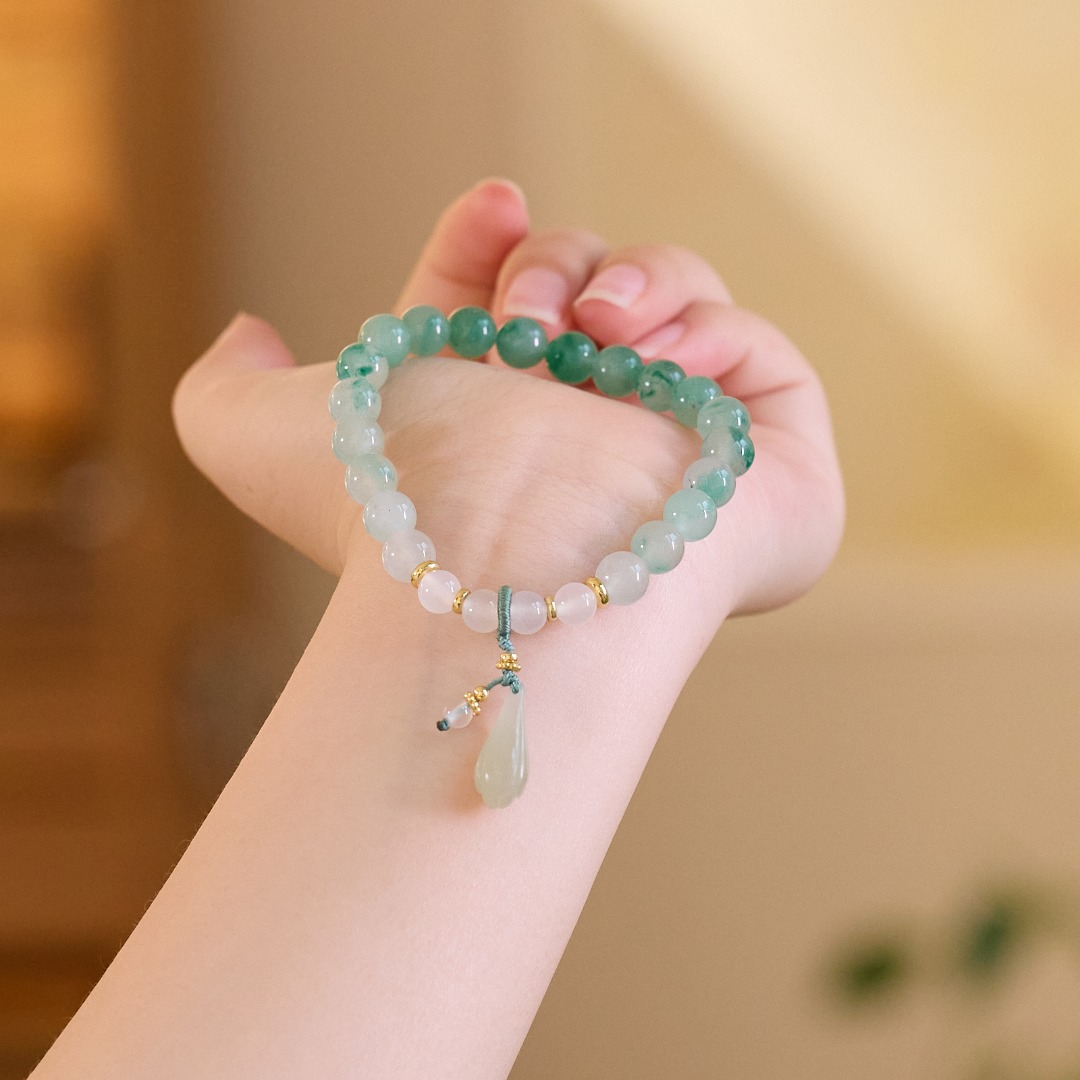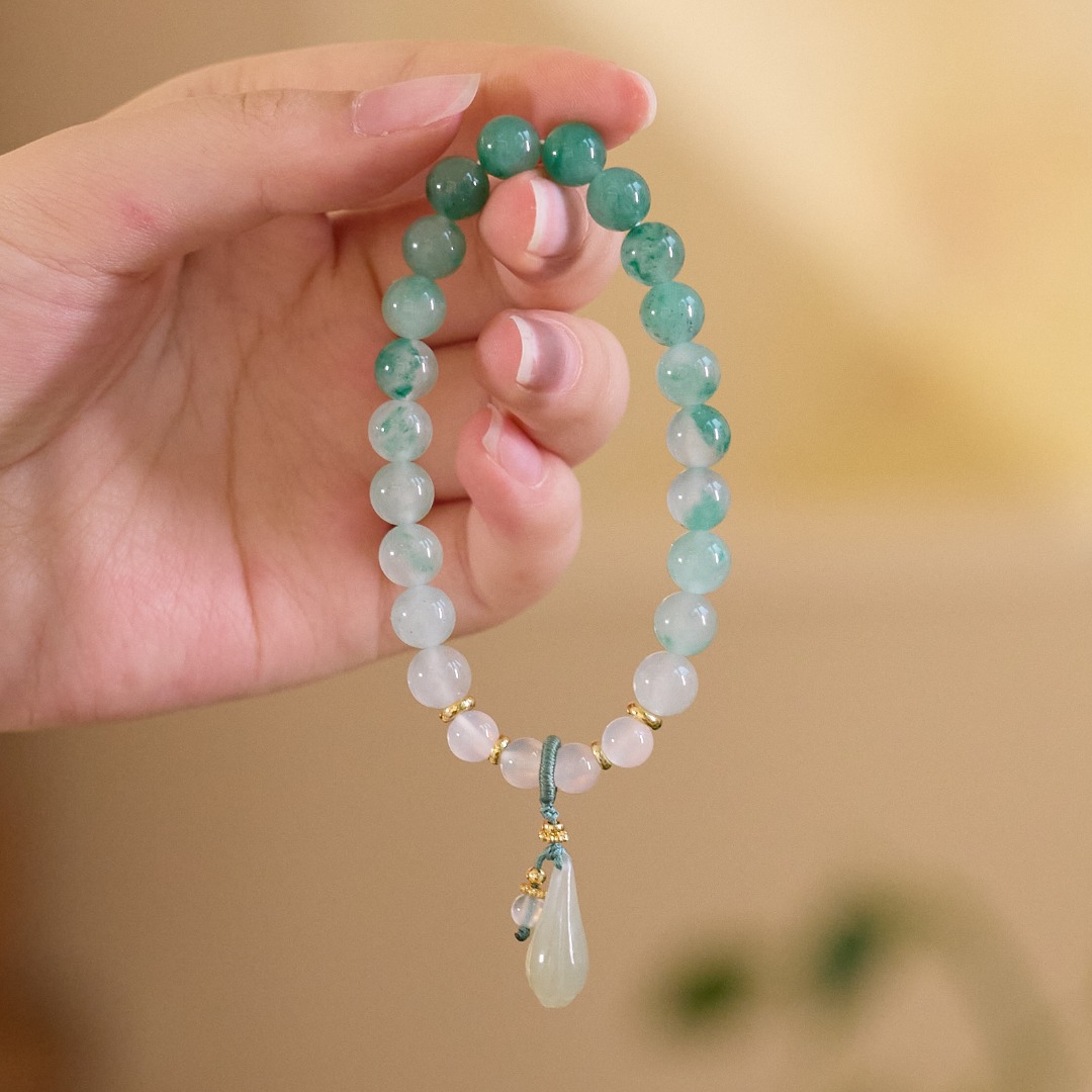 8mm african emerald white agate hetian jade magnolia bracelet