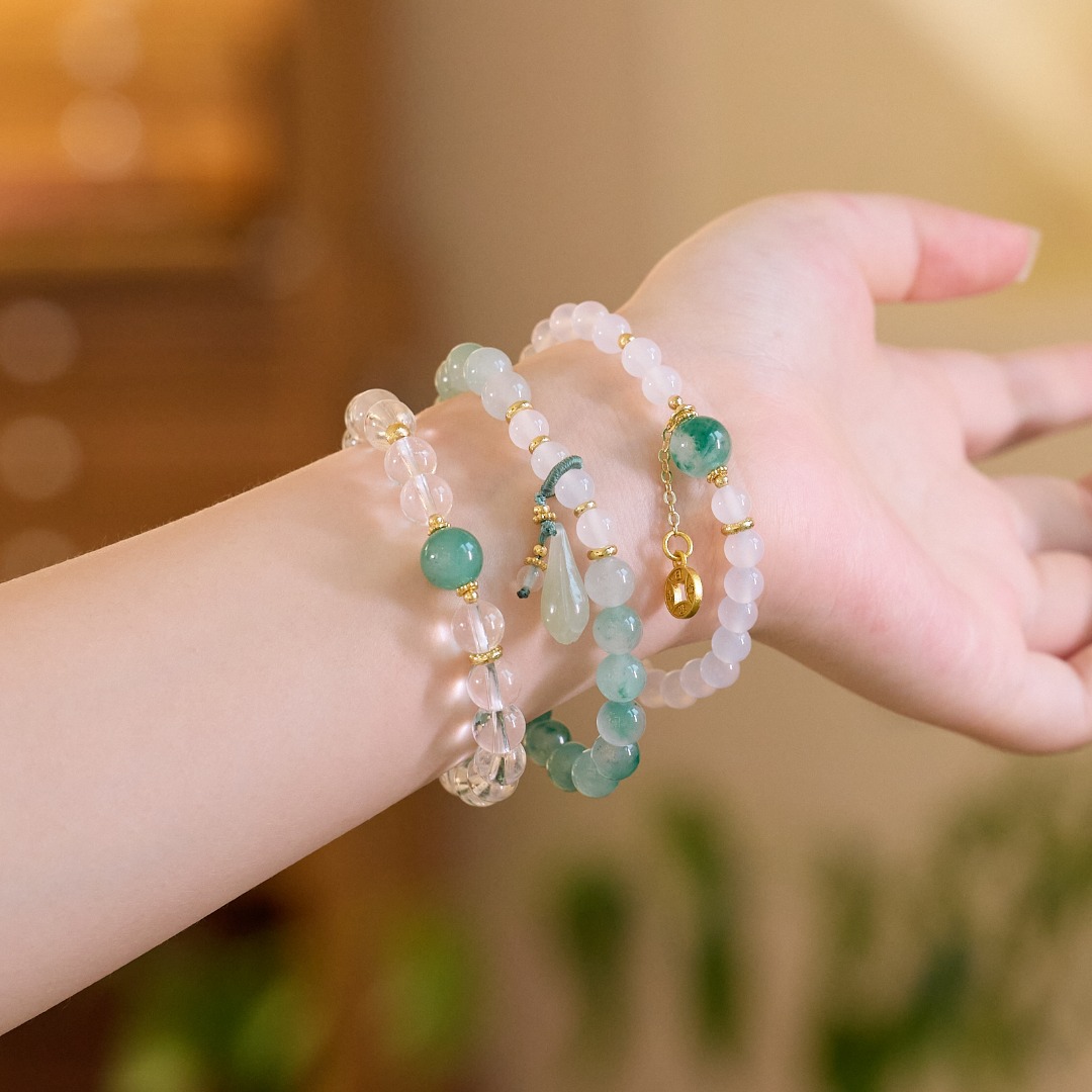 |主材|非洲翠,白水晶,白玛瑙适合手围14-16cm制作