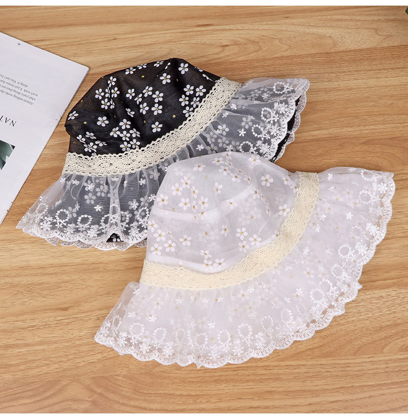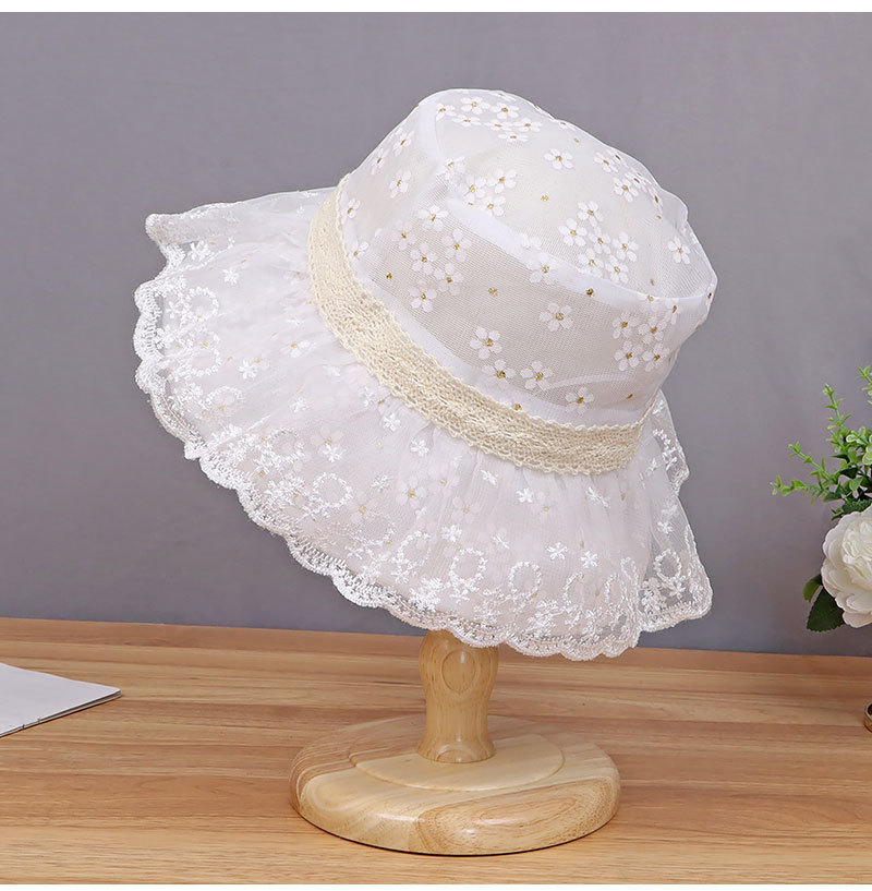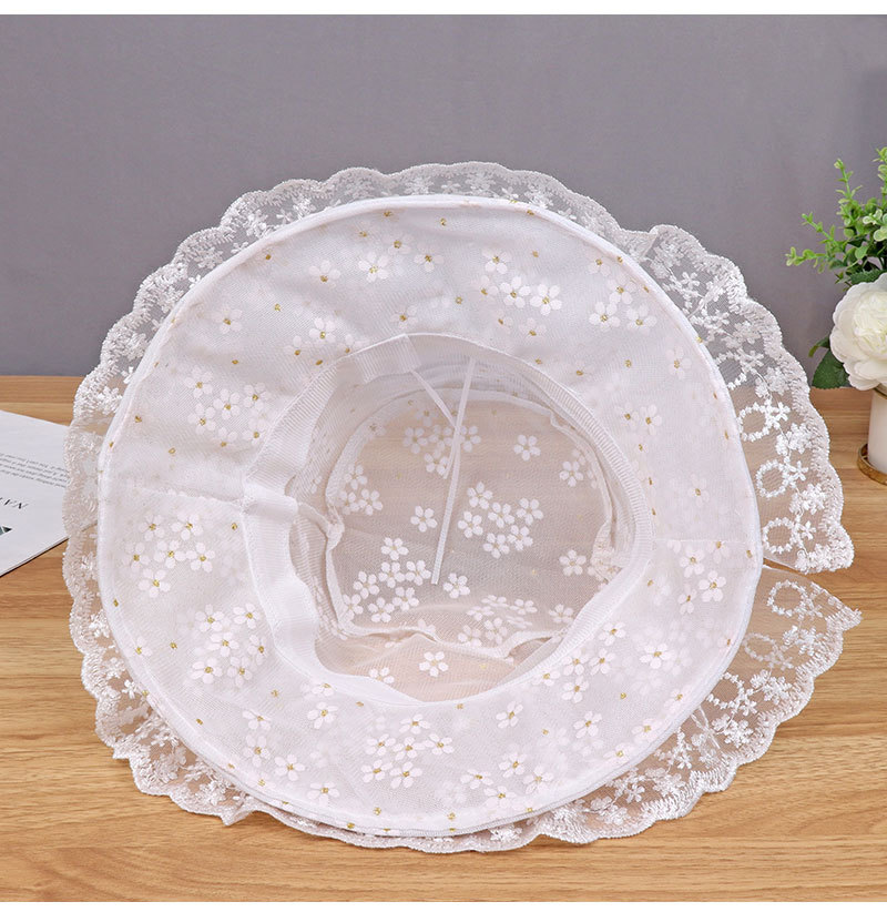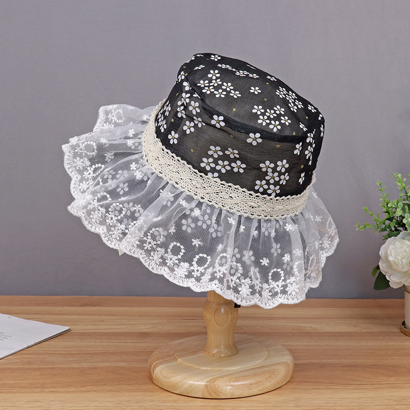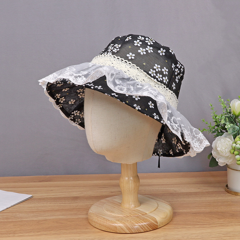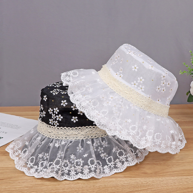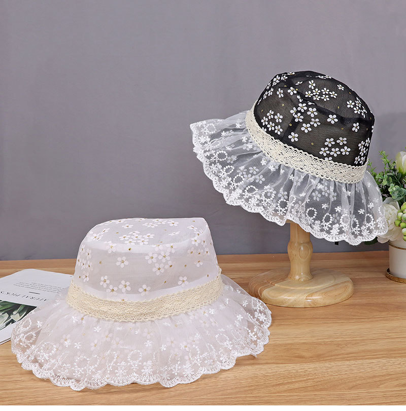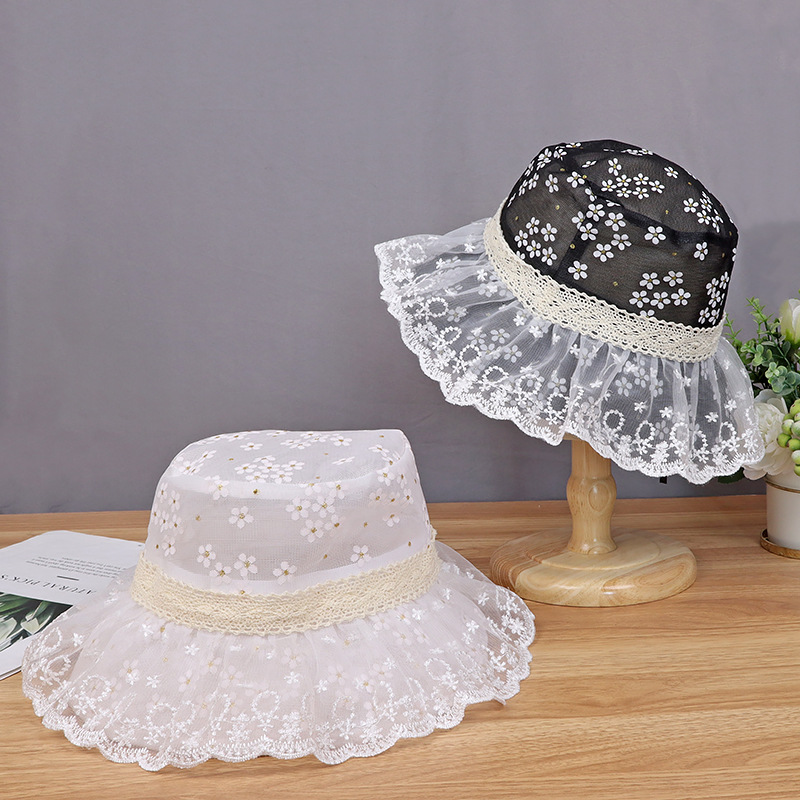 hat women's new sun-proof sun protection hat white lace sun bucket hat summer big brim cover face breathable