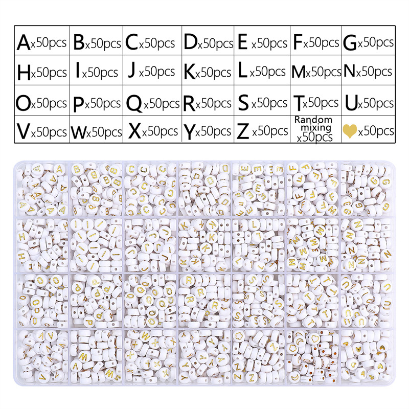28-grid box acrylic 26 beads set box 4x 7mm a-z 50 pieces per grid white background gold word 1