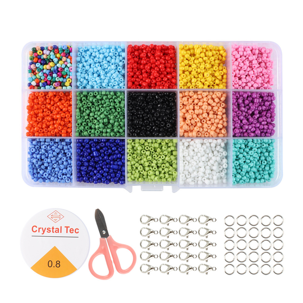 15-bead 3mm rice beads with accessories: 3mm rice beads in 15-bead format, approximately 500 beads per bead, with a box containing approximately 7,500 beads