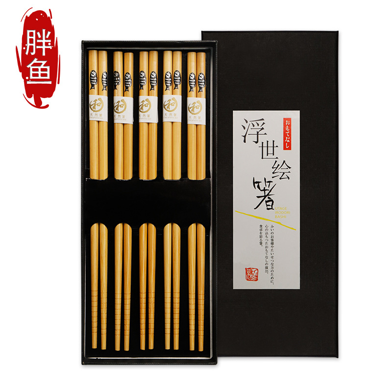 10 pairs of natural five-wood chopsticks 22.5cm