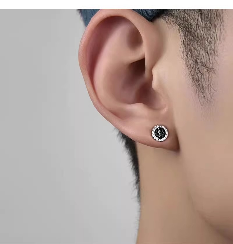 (full-jeweled stud earrings) a pair of black