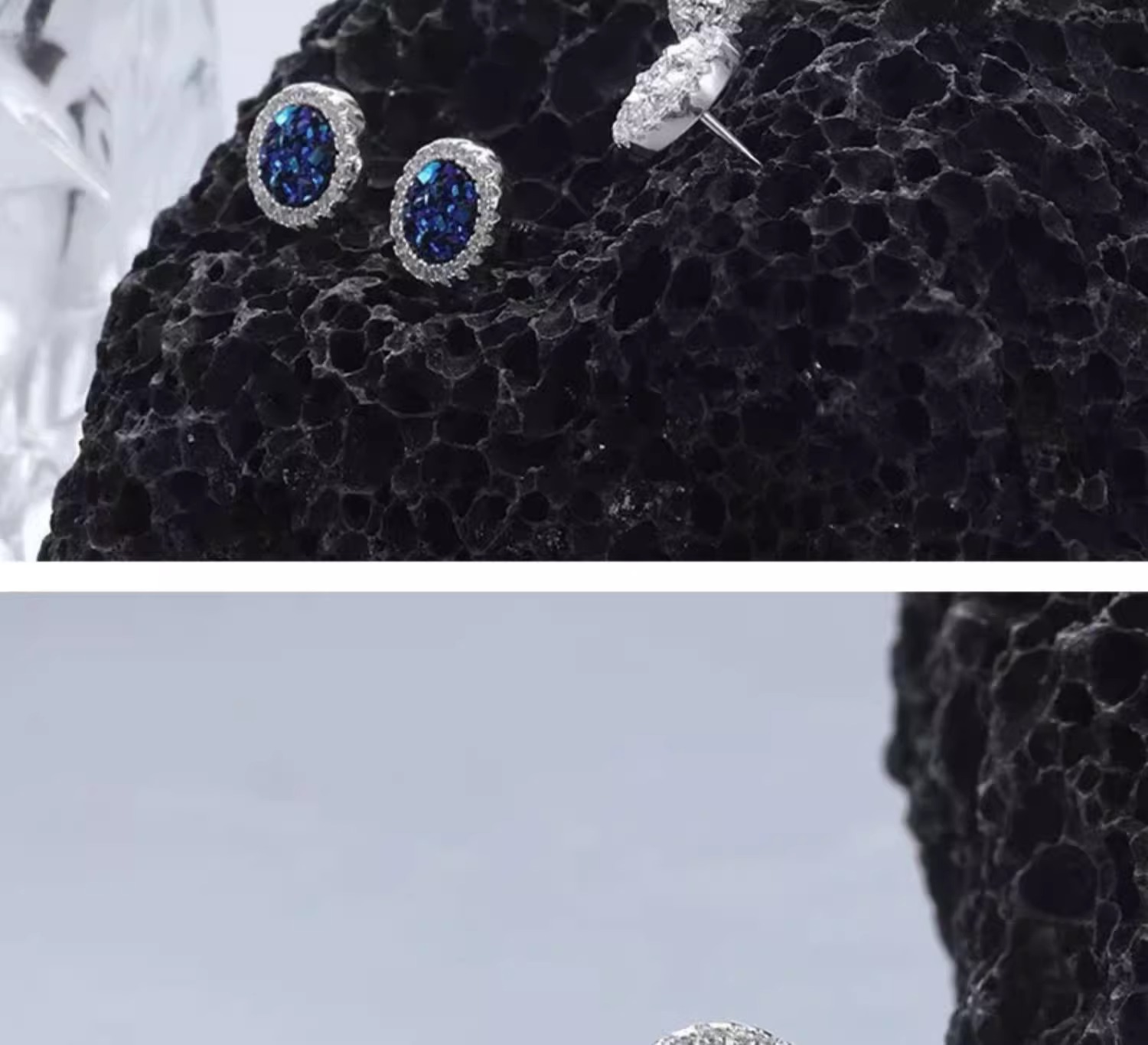 (full-jeweled stud earrings) silver pairs