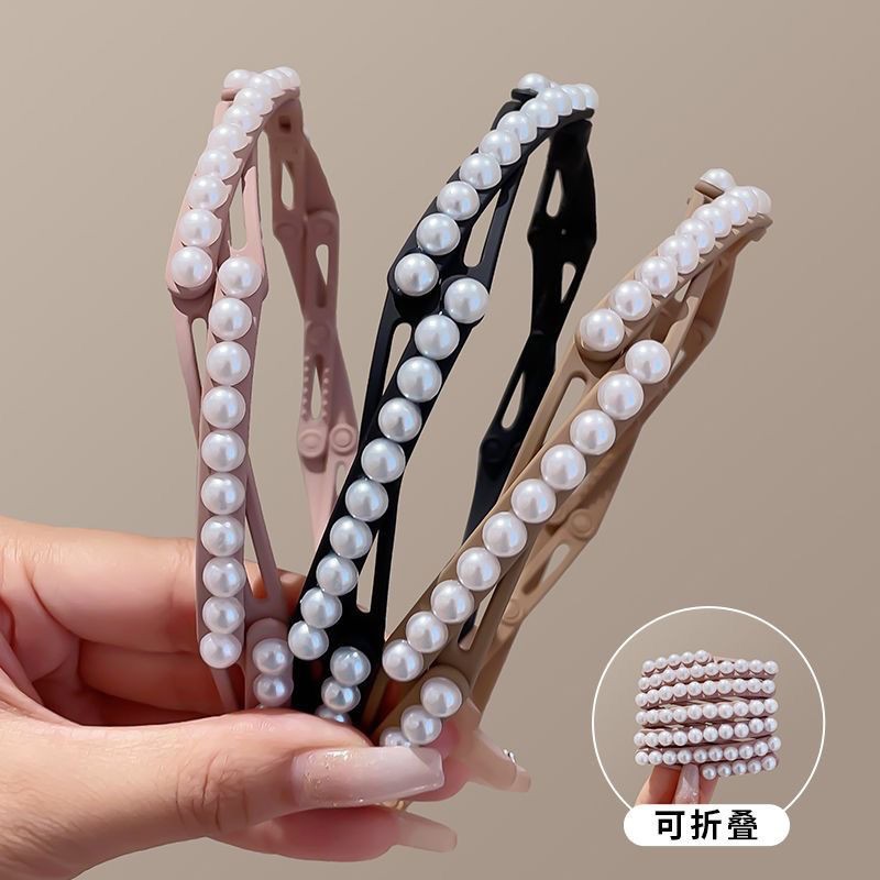 1# folding headband wearing pearl [b637] -- black