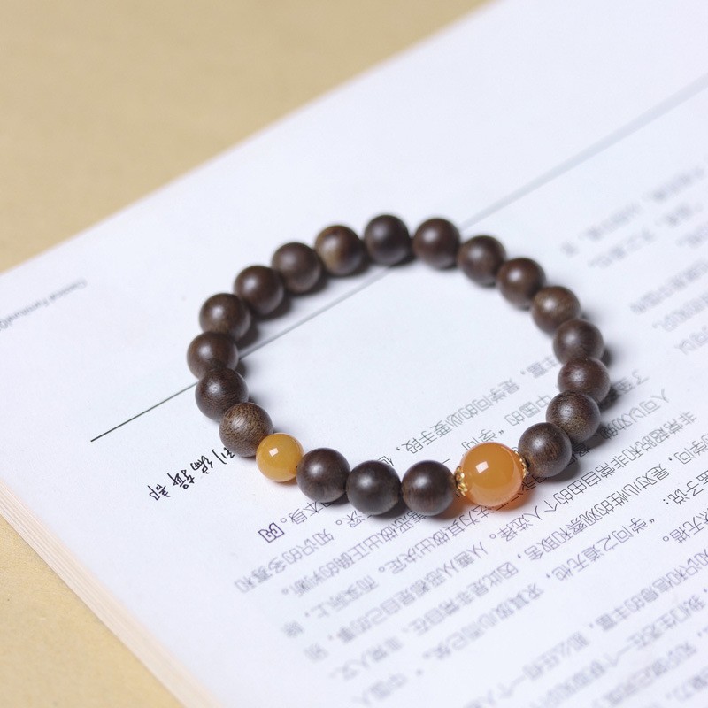 Sink-water grade agarwood bead bracelet 0.8cm with Myanmar yellow jade