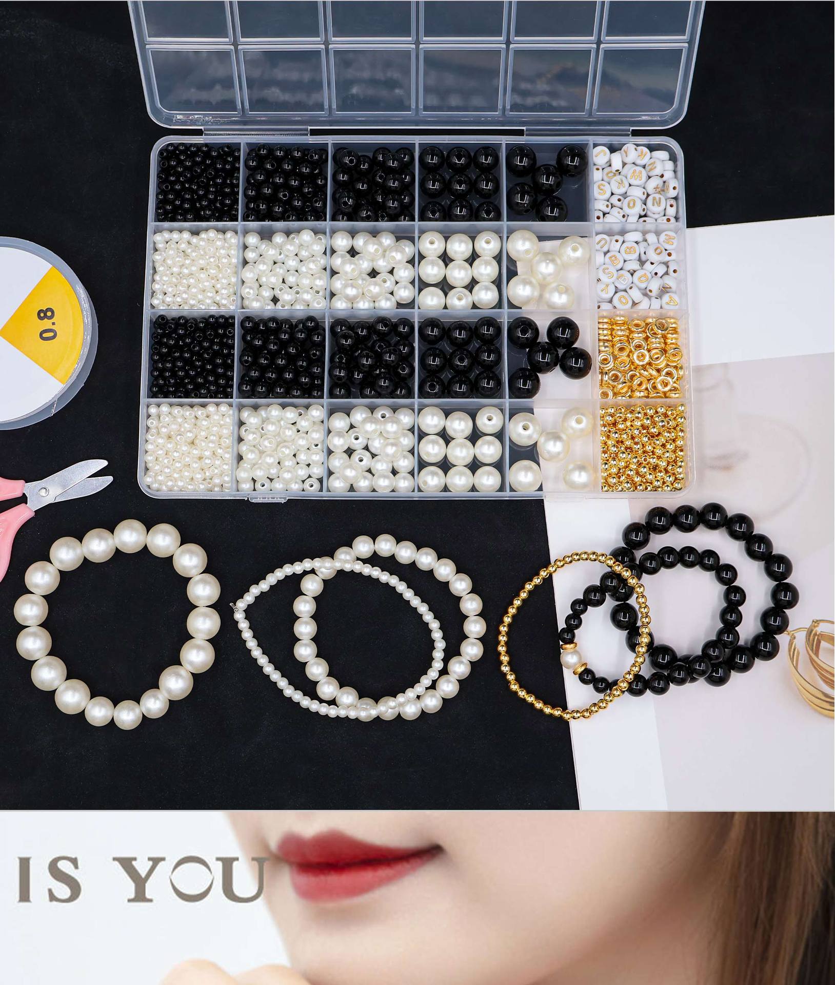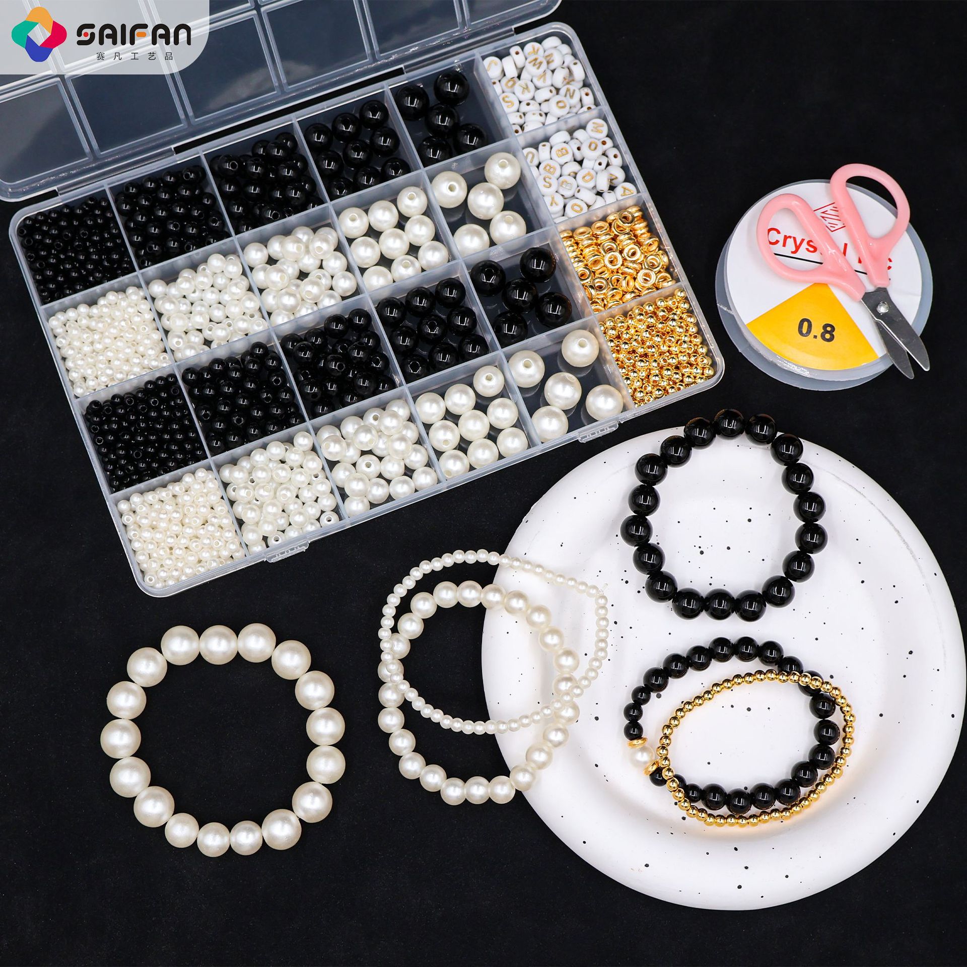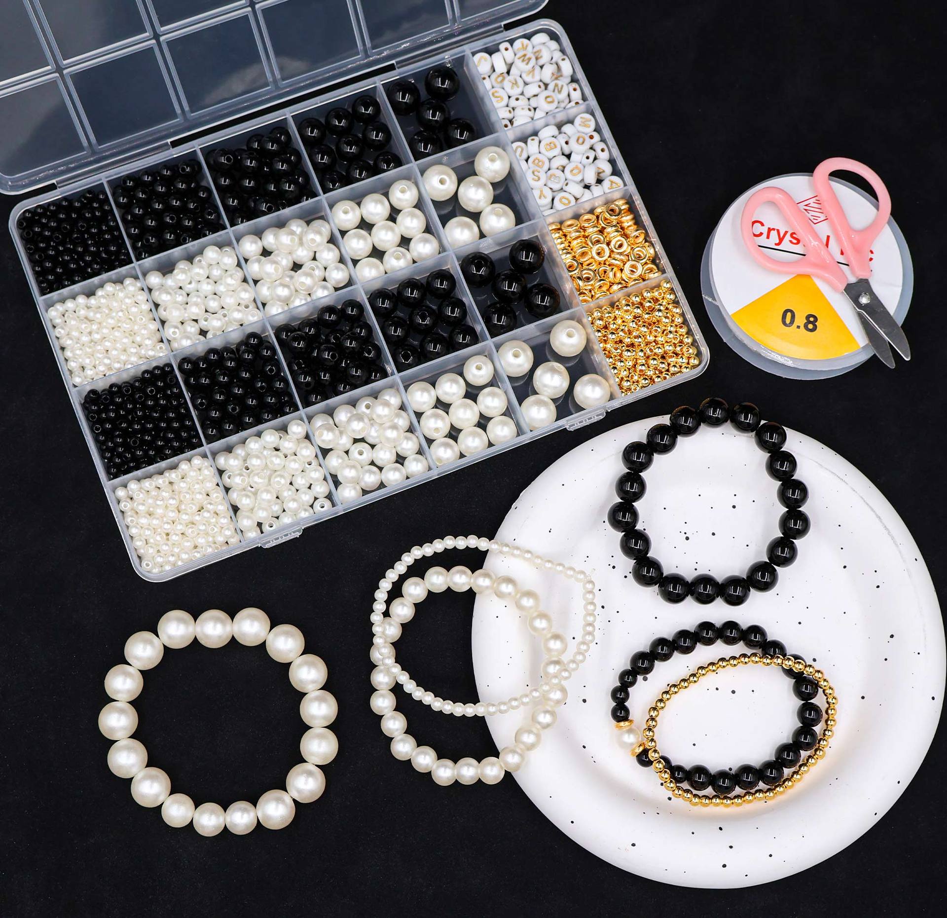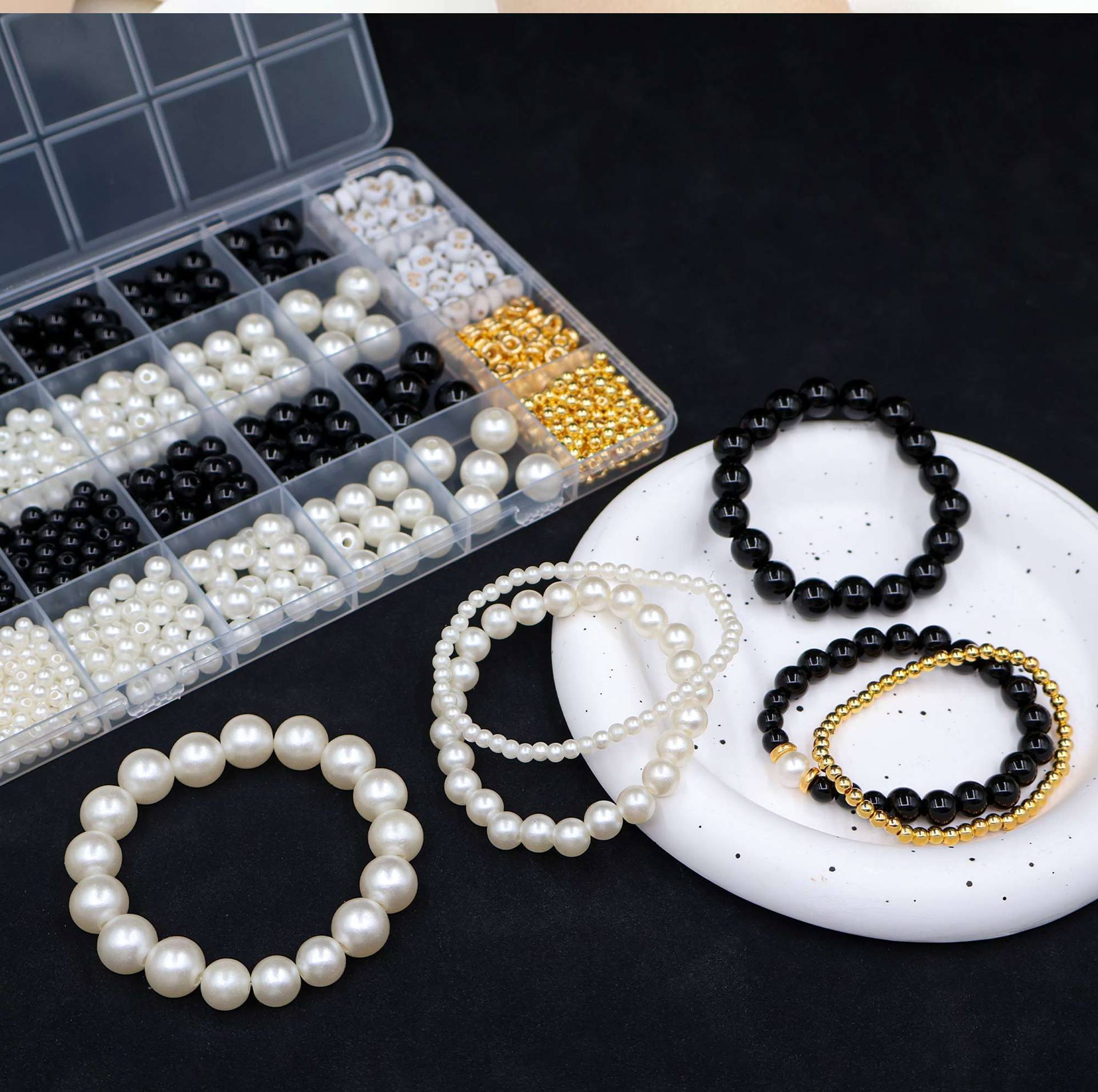 24 grid black and white pearl set about# 360pcs