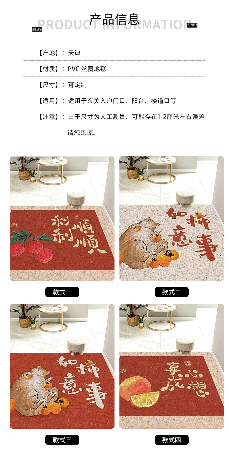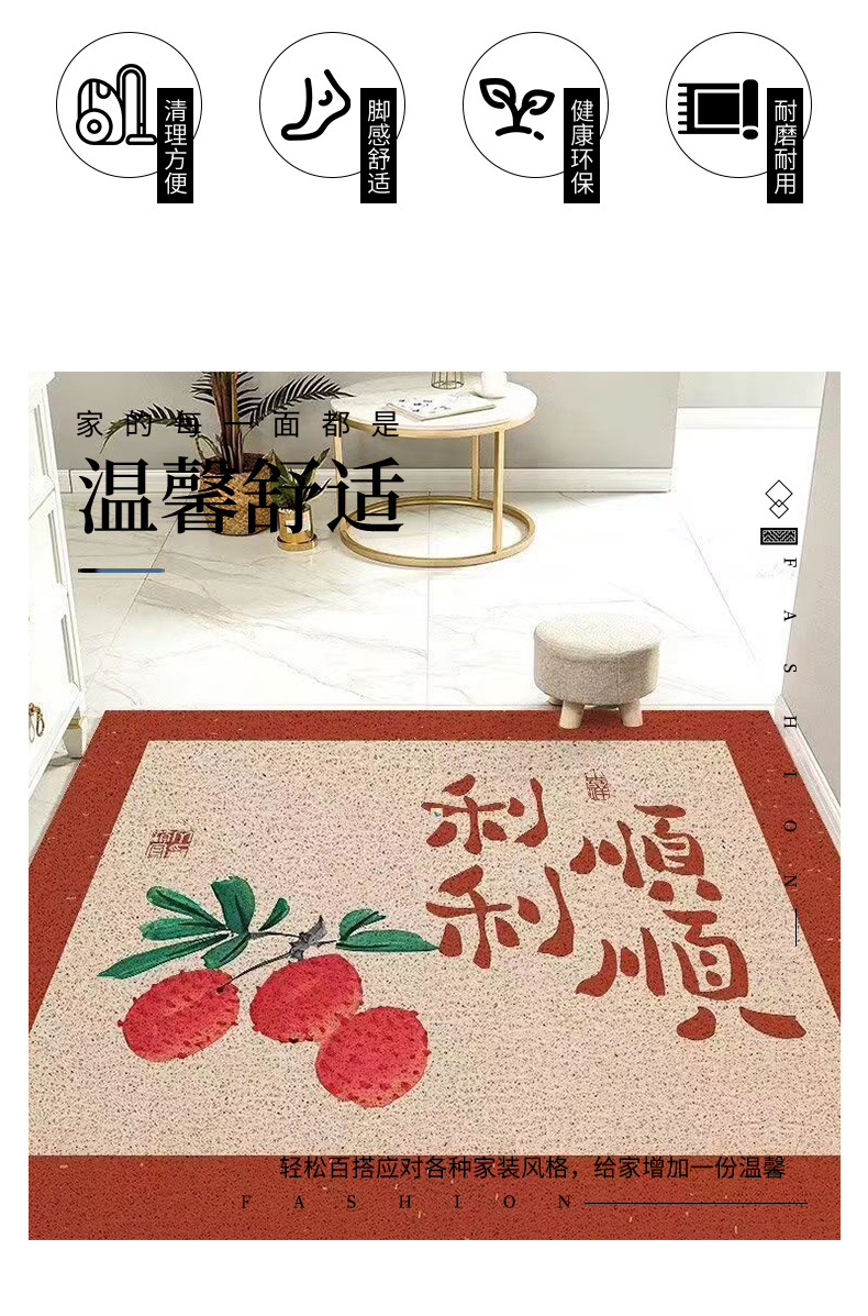 new chinese style entrance door mat household stain-resistant wear-resistant pvc loop floor mat indoor door dust removal cutting mat
